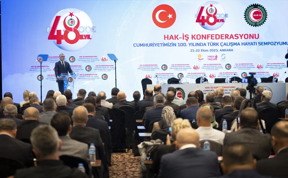 Burada konuşan Bakan Işıkhan, Türkiye'de, sendikacılık tarihinin sembol kuruluşlarından biri olan HAK-İŞ Konfederasyonu'nun 48. kuruluş yıl dönümünü kutladı.