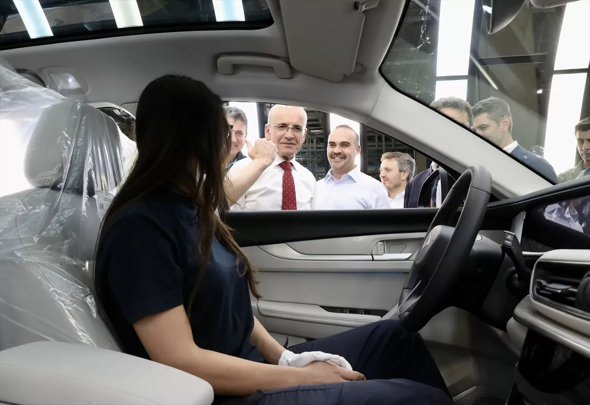 Bakan Şimşek de teknoloji kampüsü ziyaretinde ilgililerden bilgi alarak üretim bandından çıkan Togg otomobillerini inceledi.