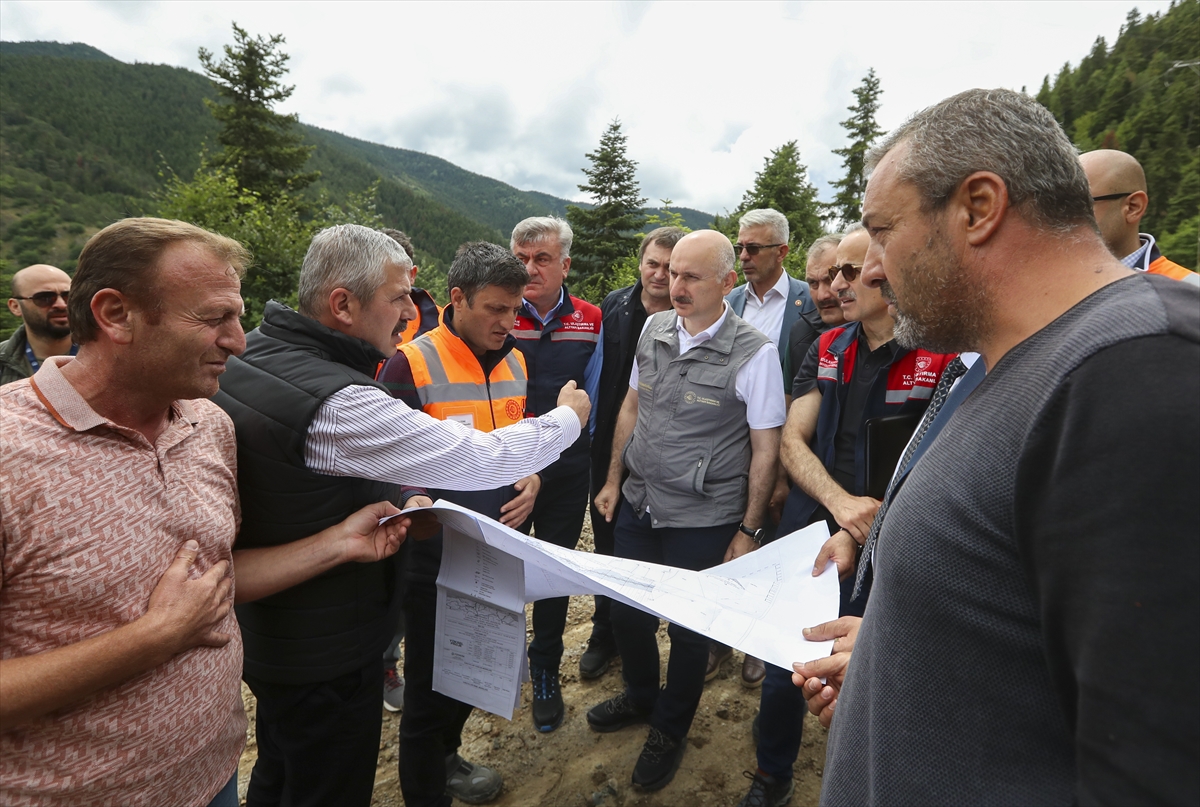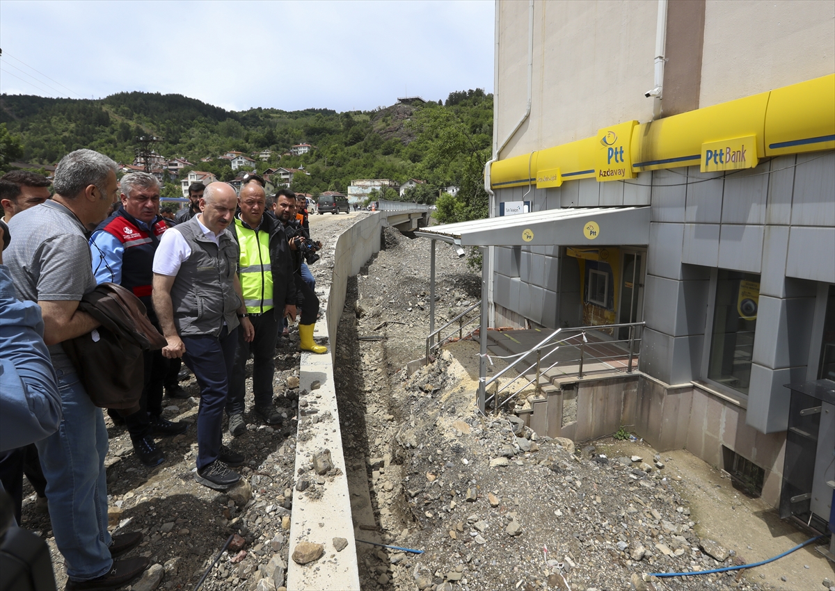 KASTAMONU (AA) – Ulaştırma ve Altyapı Bakanı Adil Karaismailoğlu, selden etkilenen Kastamonu'nun Küre, Azdavay ve Pınarbaşı ilçelerinde incelemede bulunarak yetkililerden çalışmalara ilişkin bilgi aldı.