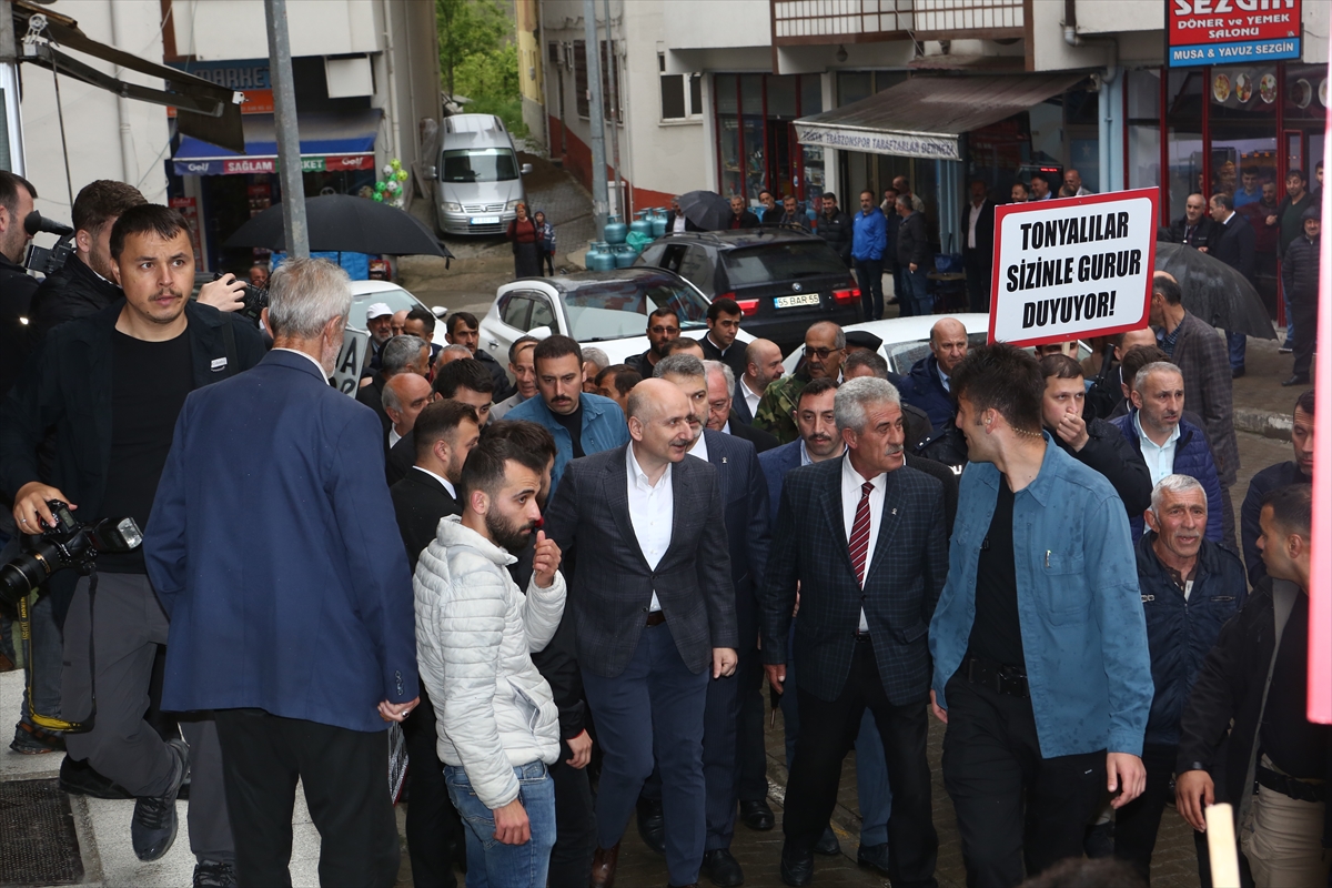 Daha sonra Tonya ilçesine geçen Karaismailoğlu, Karayollarının şantiyesi, Tonya Belediye Başkanlığı, Muhtarlar Derneği ile AK Parti İlçe Başkanlığını ziyaret etti.