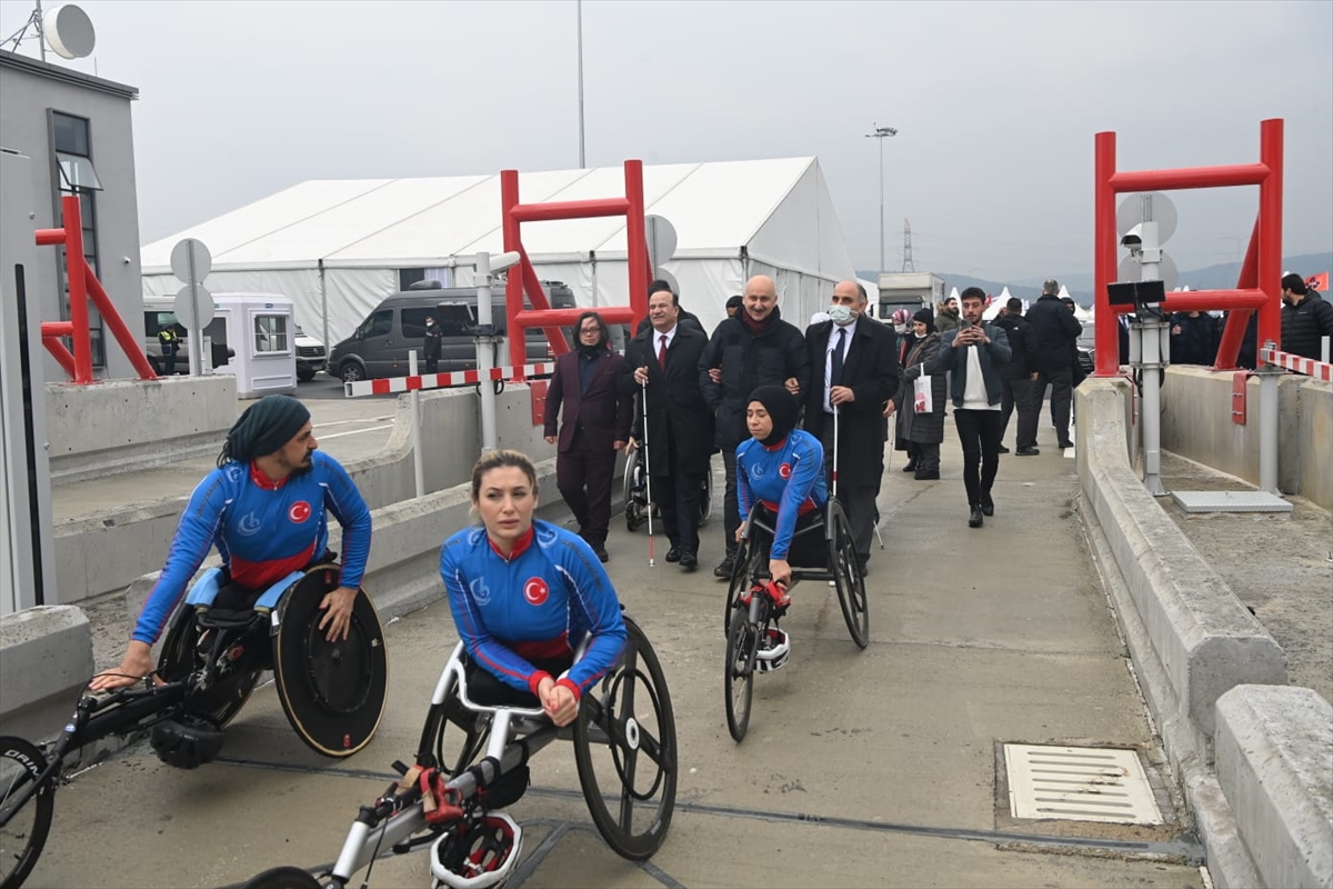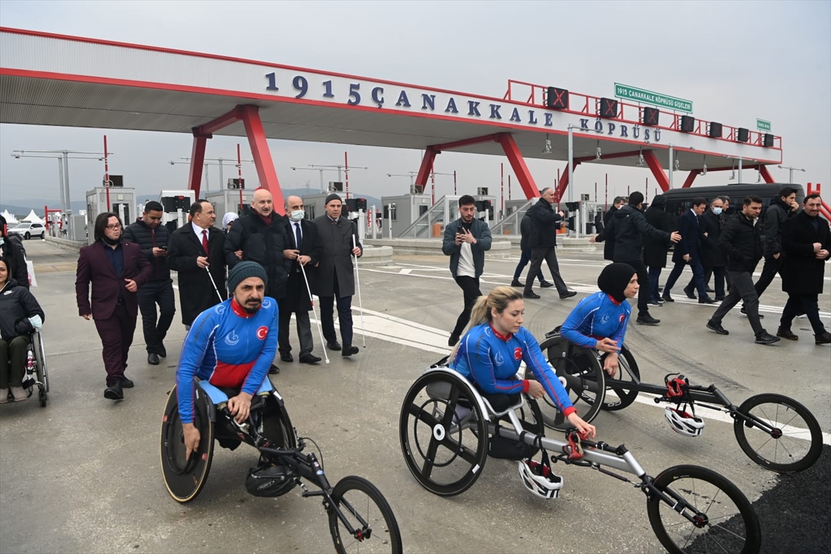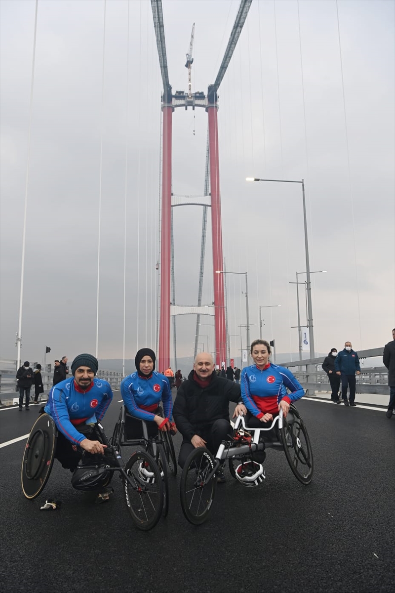 Ulaştırma ve Altyapı Bakanı Adil Karaismailoğlu, konuşmasının ardından beraberindeki Türkiye Sakatlar Konfederasyonu Başkanı Yusuf Çelebi ve engelli milli sporcular ile köprüde yürüdü.