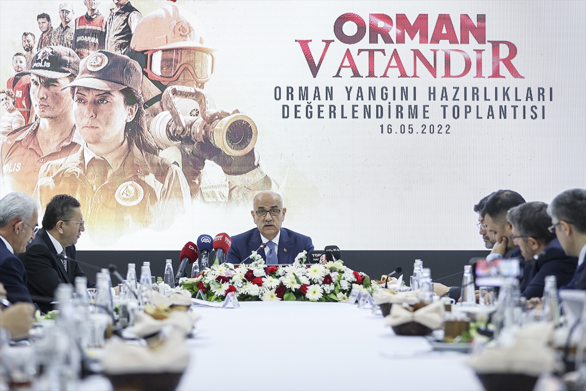 "Yeşil vatanımız olarak tanımladığımız ormanlarımızı her yıl yangınlara karşı korumak için önemli adımlar atıyoruz. Bu yıl orman yangınlarıyla mücadele özellikle teknoloji yoğunluklu bir strateji çerçevesinde gerçekleştirilecektir. Yangınlara karşı hava ve kara gücümüzü daha da güçlendiriyoruz. 39 olan helikopter sayımızı 55'e, uçak sayımızı 3'ten 20'ye, İHA sayımızı 4'ten 8'e yükselttik. Rezerv güç olarak 25 helikopter, 2 uçak ve 1 İHA hazırda beklemektedir. Yani hava gücü olarak hazırlıklarımız bu manada tamdır. Yangınların söndürülmesinde en önemli güç olan karadan müdahale ekiplerini de önemli ölçüde artırdık. Orman teşkilatı başta olmak üzere, jandarma, sivil toplum kuruluşları ve gönüllü vatandaşlarımıza yangınlara karşı eğitim verdik, vermeye devam ediyoruz. Bu eğitimlere 21 bin teşkilat mensubumuzun yanı sıra 20 bin askeri personel ve 100 binin üzerinde gönüllü vatandaşımızın katıldığını belirtmek isterim. Yeni katılacak 5 bin işçi, 283 mühendis ve 1.500 orman muhafaza memurumuz ile ekiplerimizi daha da güçlendirdiğimizi belirtmek isterim."