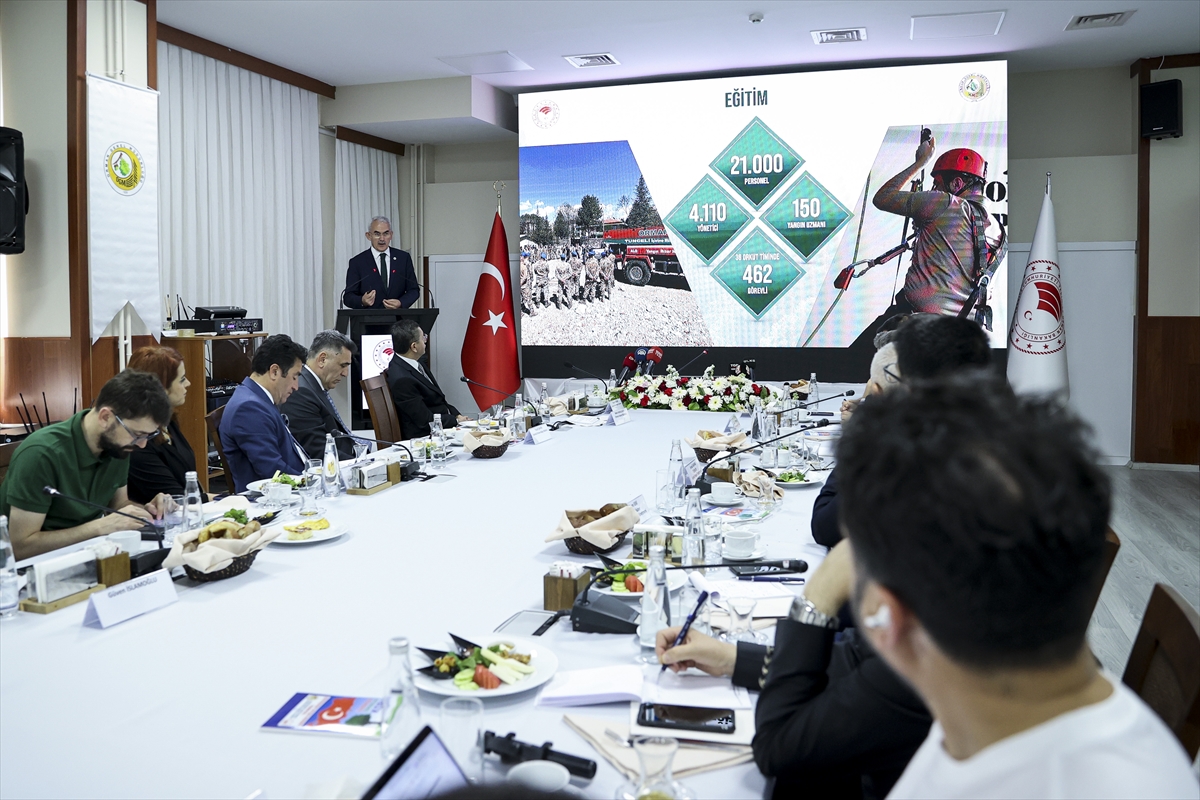 "Hava gücümüzle orman yangınlarında bizim yapabildiğimiz yangını yukarıdan aşağıya indirmek ama aşağıda da bu bahsetmiş olduğumuz araçlar ve insan kaynaklarımızla bu yangını söndürmek… İkisinin birlikte ve koordineli bir şekilde yürütülmesi gerekiyor. Bunun altını özellikle çizmek istiyorum. Karayolları Genel Müdürlüğü ve Devlet Su İşleri Genel Müdürlüğü ile koordinasyon çerçevesinde rezerv güç olarak 185 dozeri, 12 su tankerini, 25 greyderi, 1.913 ekskavatörü ve 229 treyleri de şu anda rezerv gücümüz olarak envanterde bulunduruyoruz. Bilimsel veriler ve tecrübeler göstermiştir ki yangınların söndürülmesinde asıl güç kara ekipleridir. Havadan ne kadar müdahale ederseniz edin yangınlara karşı savaşı kara birlikleriyle ancak kazanırsınız. Orman yangınlarına karşı devletin birçok kurumu eş güdümlü çalışmalar yürütmektedir. Bu bağlamda orman yangınları AFAD'ın müdahale planları kapsamına alınmıştır."