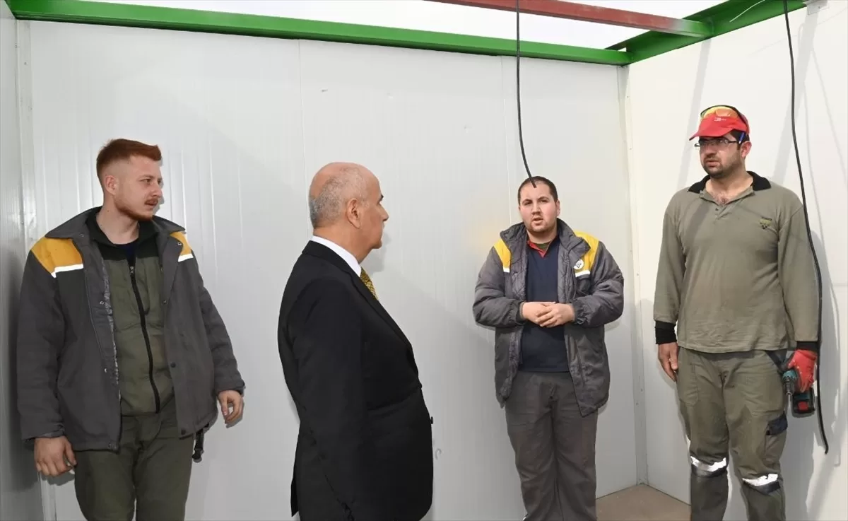 Program sonrası TMO atölyesini ziyaret eden Kirişci, TMO'nun kendi imkanlarıyla deprem bölgesindeki iş yerleri için ürettiği konteynerleri inceledi ve imalat süreciyle ilgili çalışanlardan bilgi aldı.