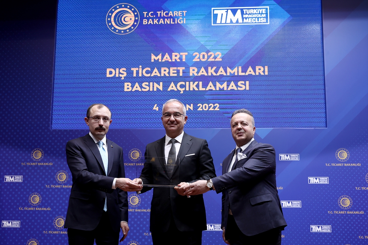 Bakan Muş, Ticaret Bakanlığı Konferans Salonu'nda, Türkiye İhracatçılar Meclisi (TİM) Başkanı İsmail Gülle ile düzenlediği basın toplantısında, mart ayı dış ticaret rakamlarını açıkladı.