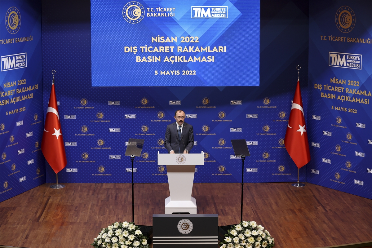Bakan Muş, Ticaret Bakanlığı Konferans Salonu'nda Türkiye İhracatçılar Meclisi (TİM) Başkanı İsmail Gülle ile düzenlediği basın toplantısında, nisan ayı dış ticaret rakamlarını açıkladı.