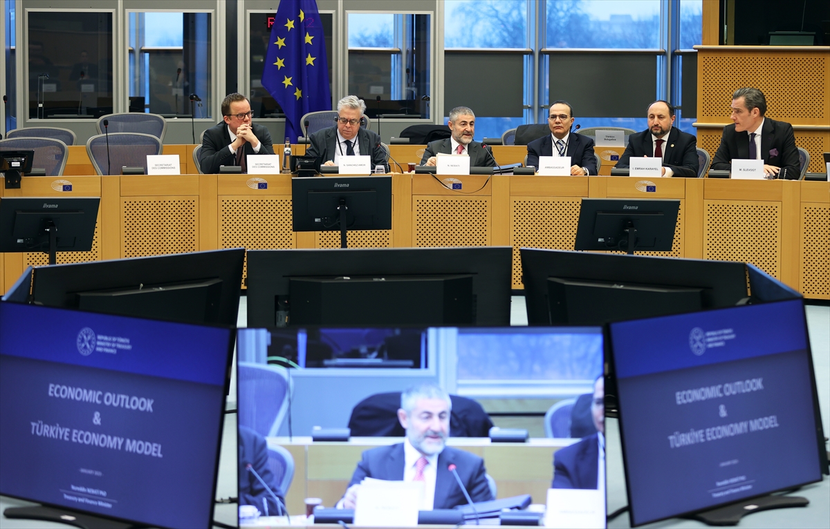 Nebati, Brüksel temasları kapsamında Avrupa Parlamentosu (AP) Dış İlişkiler Komitesi'nde özel davetli olarak "Küresel Belirsizlik Döneminde, Yeni Olanaklar ve Çözümler: Türkiye Ekonomi Modeli" konulu panelde konuştu.