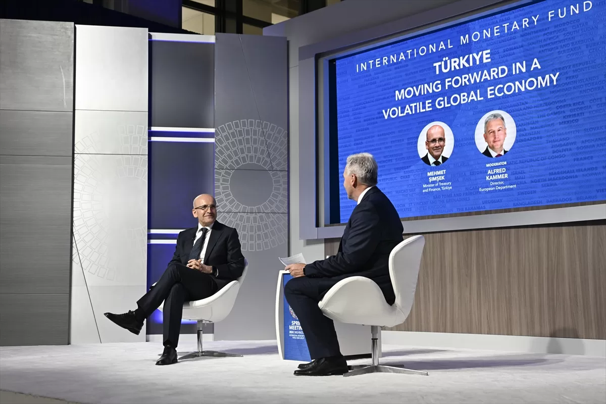 Şimşek, Uluslararası Para Fonu (IMF)-Dünya Bankası Bahar Toplantıları kapsamında düzenlenen "Türkiye: Değişken Küresel Ekonomide İleriye Doğru Gitmek" başlıklı etkinlikte konuştu.