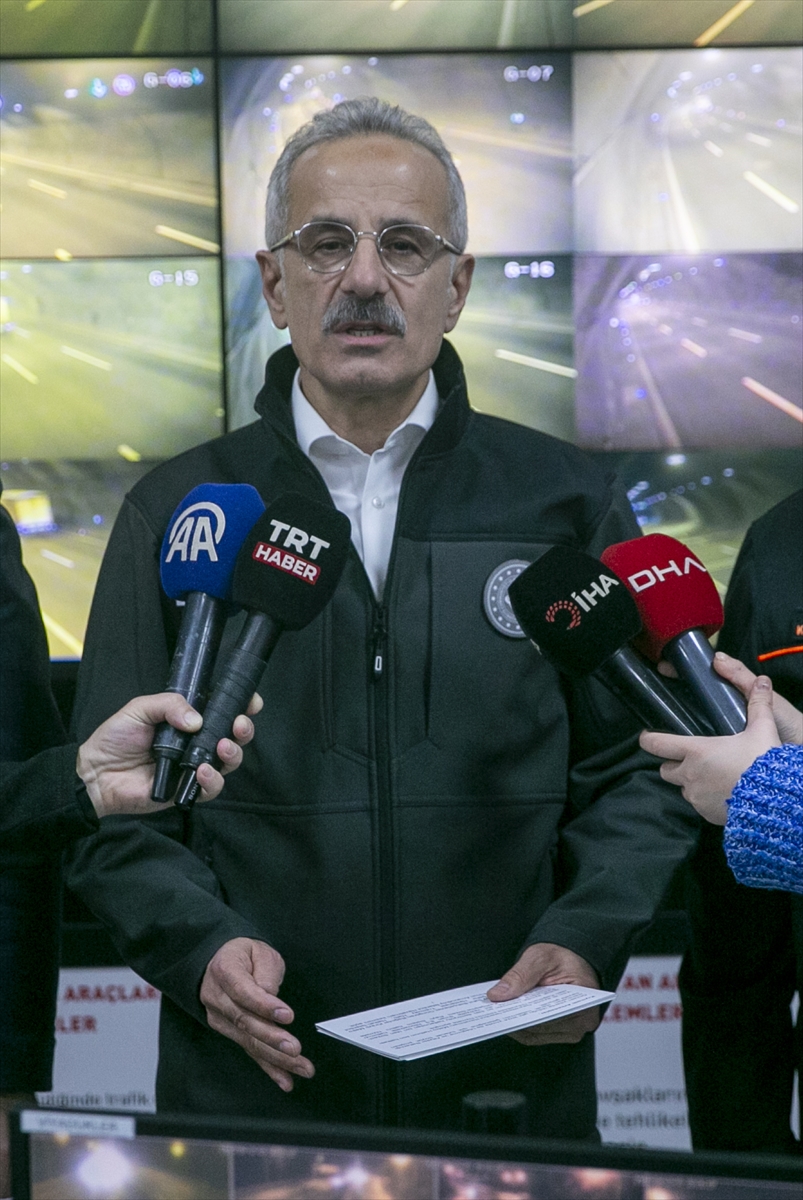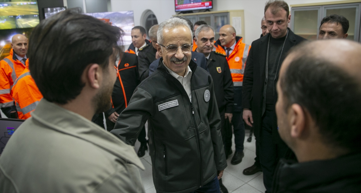 Bakan Uraloğlu, Karayolları Genel Müdürlüğü bünyesinde kurulan merkezde. güzergah analizi yapıldığını, karla mücadele çalışmaları, açılan-kapanan yollar ve anlık trafiğin monitörler üzerinden takip edildiğini bildirdi.