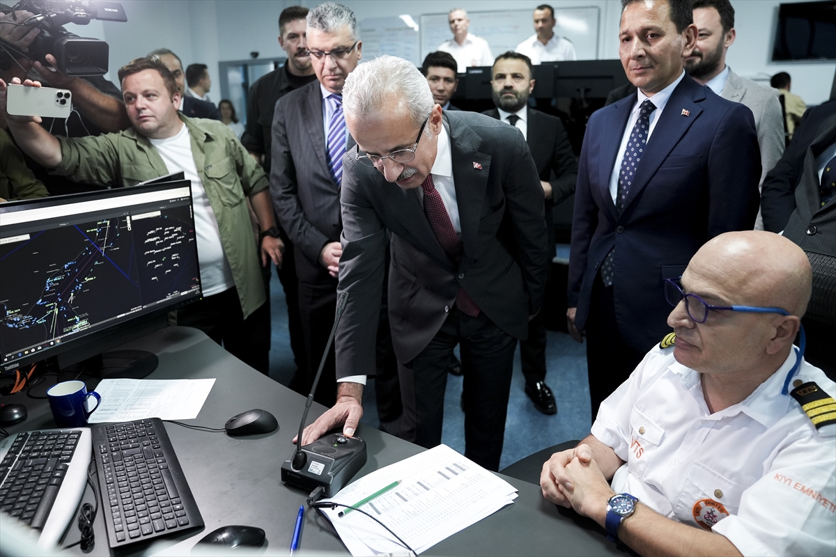 Bakan Uraloğlu, açıklamasının ardından İstanbul Gemi Trafik Hizmetleri Merkezi'nde incelemelerini sürdürdü.