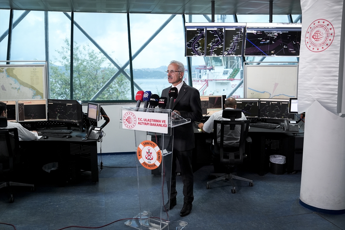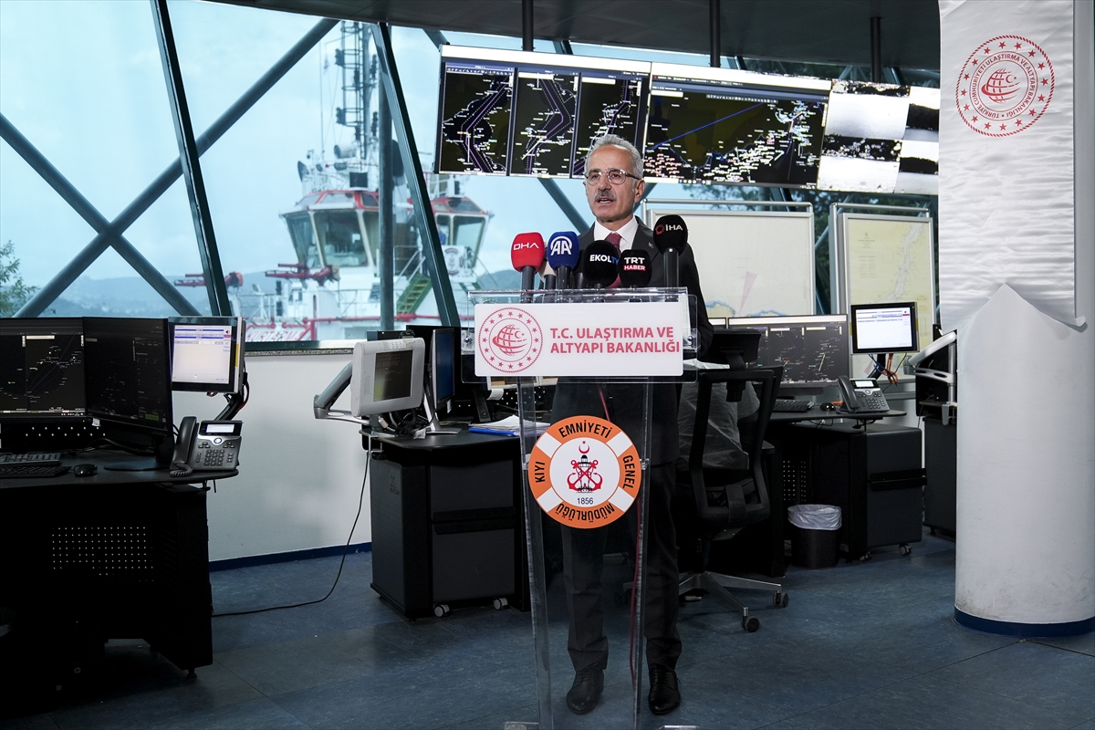 Uraloğlu, İstanbul Boğazı'nın güvenliğini sağlayan Kıyı Emniyeti Genel Müdürlüğüne bağlı İstanbul Gemi Trafik Hizmetleri Merkezi'nde incelemede bulundu, basın mensuplarına açıklama yaptı.