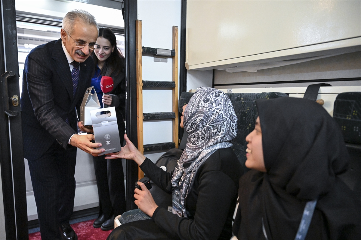 Konuşmaların ardından seyahat edecek yolcularla sohbet edip hediye veren Bakan Uraloğlu, anı defterini imzalamasının ardından tren seferini uğurladı.