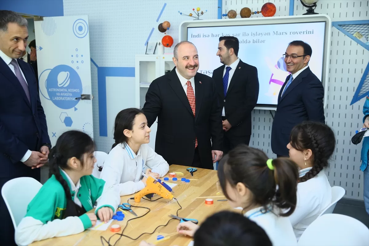 Azerbaycan Teknik Üniversitesinde kurulan Bilişim Vadisi Bakü'nün tamamlanmak üzere olan binasında incelemede bulunan Varank, T3 Vakfının desteğiyle kurulan ve Deneyap Teknoloji Atölyeleri'ni de barındıran Bakü Bilim Merkezini ziyaret etti.