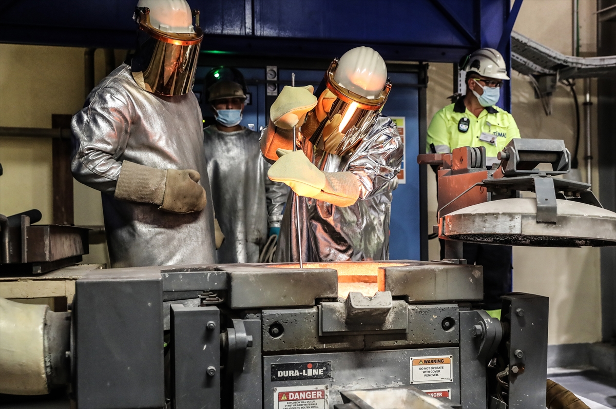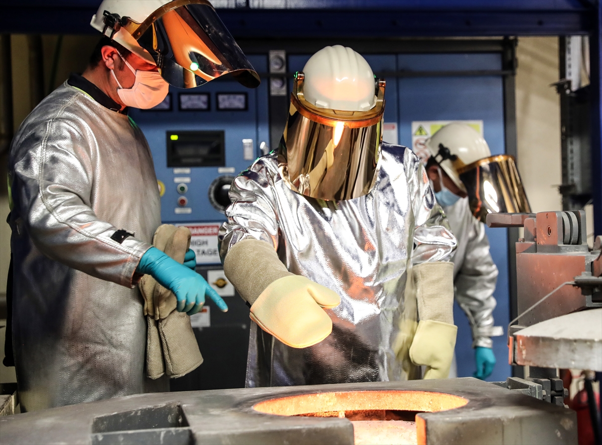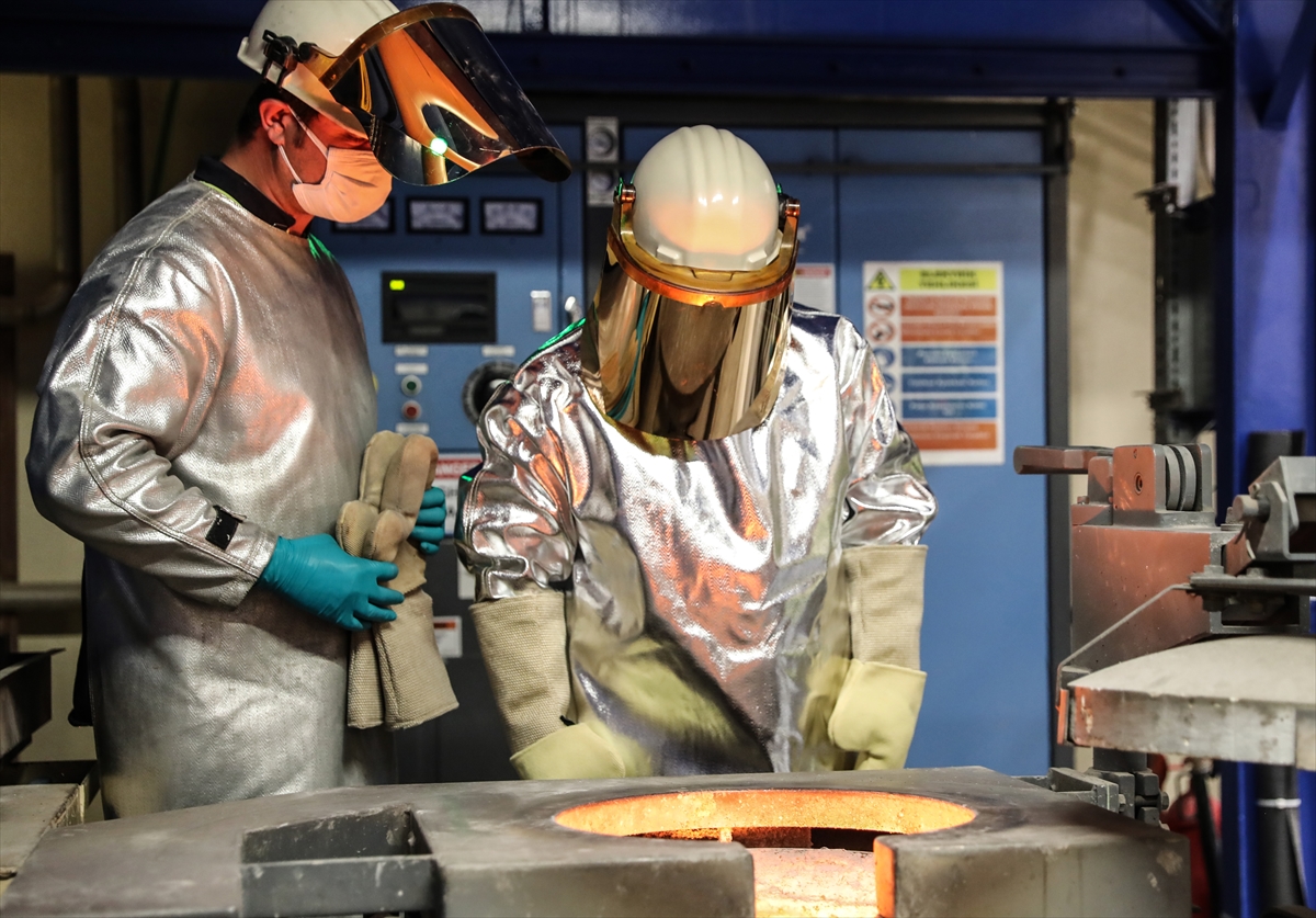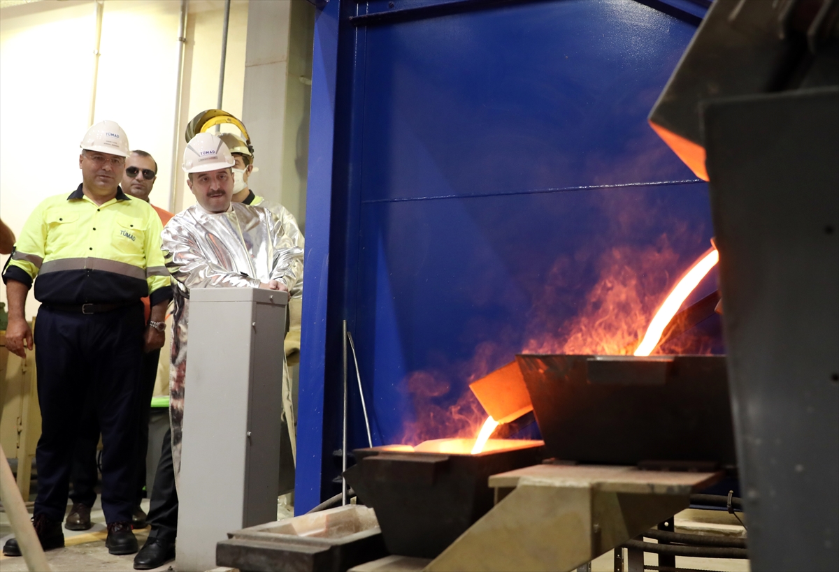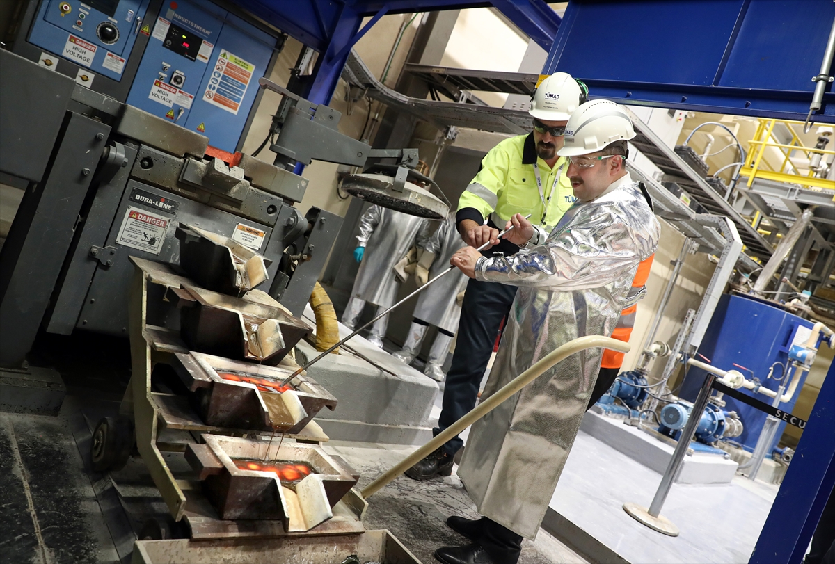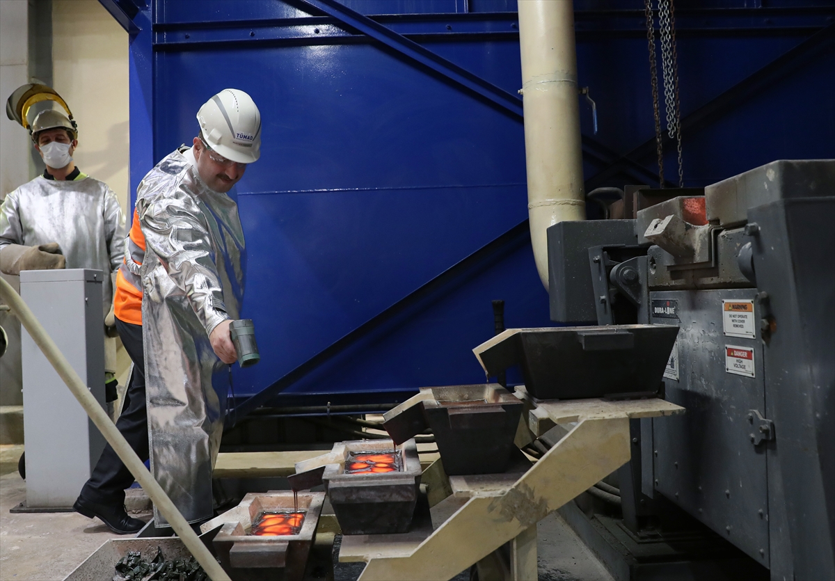 İşletme hakkında yetkililerden bilgi alan Varank, altın odasına geçti. Burada altının kıvamını yüksek ısıya dayanıklı elbise ve eldivenleri takarak kontrol eden Varank, potayı devirerek altın ve gümüş madenini döküm kalıbına aktardı.