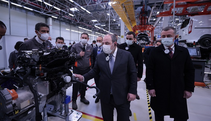 Sanayi ve Teknoloji Bakanı Mustafa Varank, Kocaeli Valisi Seddar Yavuz ve Kocaeli Büyükşehir Belediye Başkanı Tahir Büyükakın, Ford Otosan’ın Kocaeli Fabrikaları’nı ziyaret ederek, şirketin geçtiğimiz ay Cumhurbaşkanlığı tarafından açıklanan teşvik kararı kapsamında planlanan 20,5 milyar TL tutarındaki yeni yatırım öngörüsü ile 2022 yılı itibarıyla devreye alınacak yeni nesil araç üretimi ve Batarya Montaj Fabrikası ile ilgili gelişmelere yönelik bilgi aldı. Bakan Varank, Şarj Edilebilir Hibrit Elektrikli Araçlar (PHEV) Atölyesini ziyaret ederken, yaklaşık 2 bin 300 kadına istihdam sağlayan Ford Otosan’ın ‘İş’te Eşitlik’ kapsamında kadın çalışan sayısını artırmaya yönelik yapmış olduğu projelerden övgüyle bahsederek yetkilileri tebrik etti.
