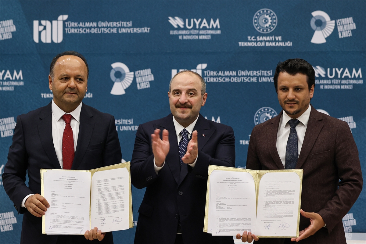 Bakan Varank, Türk Alman Üniversitesinde düzenlenen Türk Alman Üniversitesi Uluslararası Yüzey Araştırmaları ve İnovasyon Merkezi (UYAM) Güdümlü Proje İmza Töreni'ne katıldı.