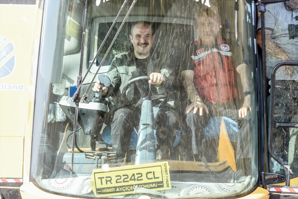Konuşmaların ardından Bakanlar Varank ile Kirişci, ayçiçeği üretimi yapılan tarladaki biçerdöverin yanına geçti. Daha sonra iki bakan biçerdövere binerek Ar-Ge’si ve deneme üretimleri tamamen yerli ve milli imkanlarla gerçekleştirilen Türkiye’nin ilk yerli ve milli hibrit tohuma sahip ayçiçeğinin hasadını yaptı. Bakanlar Varank ile Kirişci, hasat ettikleri ürünleri bir kavanozun içine koyarak imzaladı.