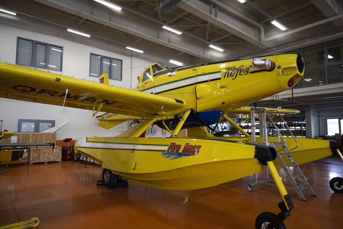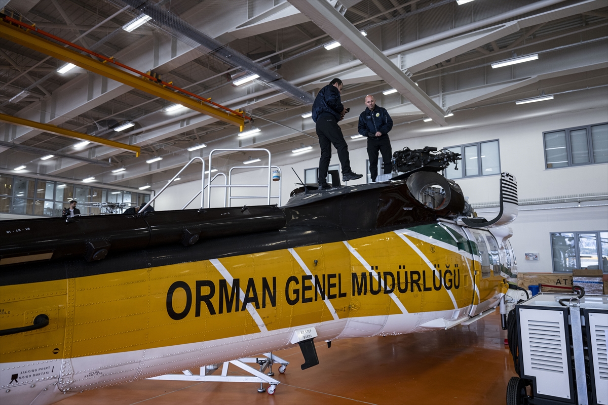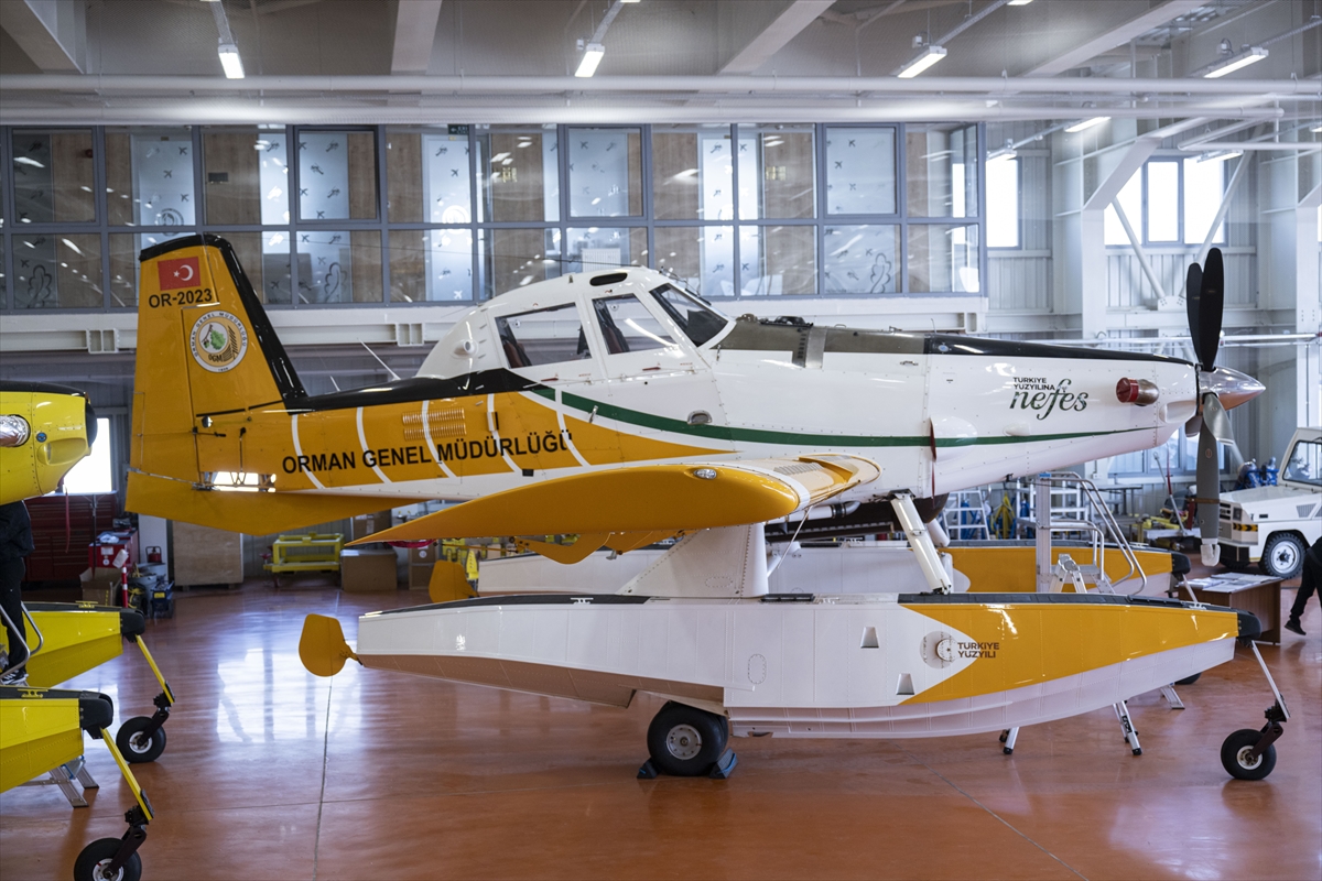 Yumaklı, Orman Genel Müdürlüğü Havacılık Daire Başkanlığı'nda orman yangınlarıyla mücadelede kullanılan hava araçlarının bakım çalışmalarını inceledi.