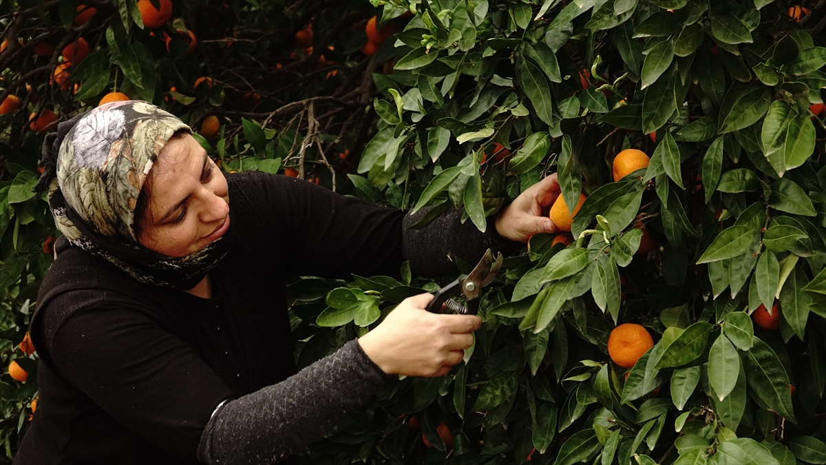 "Mandalinayı sıfır kesim dediğimiz dallı budaklı olmayacak şekilde makas yardımı ile ağaçtan kesiyoruz. Diğer mandalinalara zarar vermeyecek şekilde onları topluyoruz. Bir günümüz böyle geçiyor. Sıkıntısı yok yağmur çamur olmadıkça. Arkadaşlarımızla güle eğlene topluyoruz mandalinamızı.”