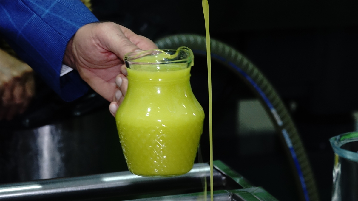 Altınova Mahallesi'nde bir çiftliğin bahçesindeki yaklaşık 11 asırlık ağaçtan festivale katılanların hasat ettiği zeytinler fabrikada sıkılarak yağa dönüştürüldü.