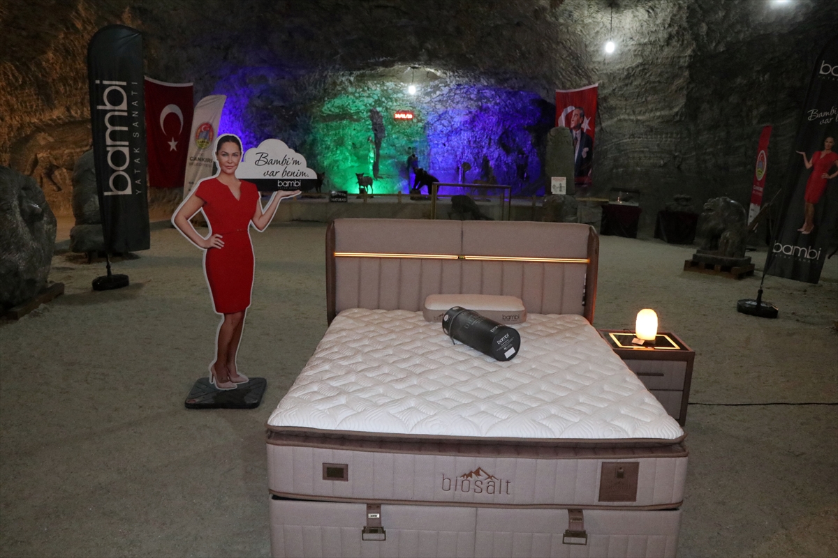 ÇANKIRI (AA) – Bambi Yatak, Çankırı kaya tuzuyla geliştirdiği ve "Biosalt" adını verdiği yeni yatağını yerin 150 metre altındaki tuz mağarasında tanıttı.