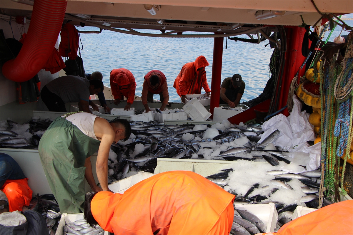 Balıkçılardan Akın Toplu da günde yaklaşık 5 bin çift palamut yakaladıklarını dile getirdi.