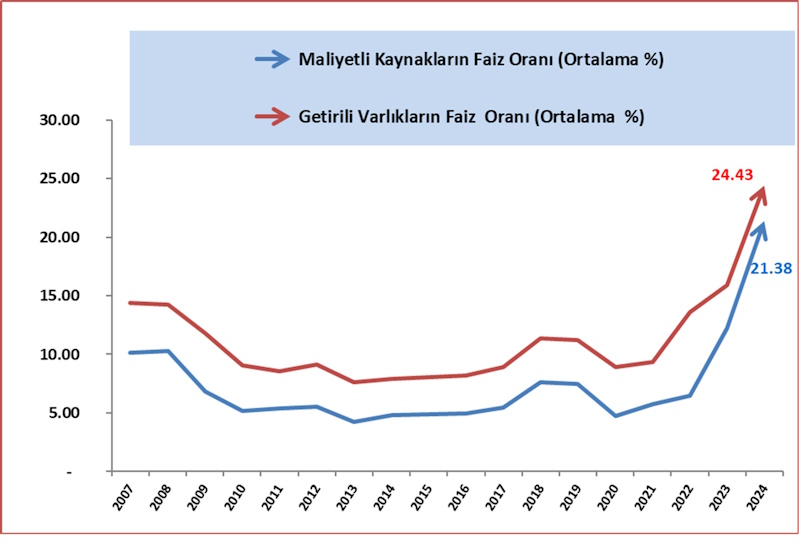– Bankacılık sektörünün kârlılığı 2022 ve 2023 yıllarında gerek faiz ve gerekse faiz dışı gelirlerdeki artışa bağlı olarak olağanüstü ölçüde arttı. Ancak 2024 yılında yüksek tutulan faizler nedeniyle bankacılık karının artış hızı yavaşladı. Bankacılık sektörü, 2024 yılını 658 milyar 975 milyon lira ile kapattı.