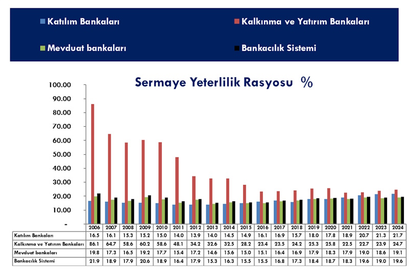 Yayımlanan verilere göre 2024 yılında SYR oranları sektör için %19,6, katılım bankaları için 21.7, kalkınma ve yatırım bankaları için %24,7 ve mevduat bankaları için ise %19,1 olarak ölçüldü.
