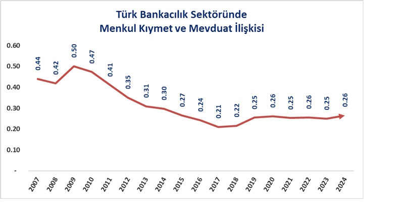 Mevduat ile menkul kıymet plasmanları arasındaki ilişi ise 2005 yılında %50 seviyesinin üzerine çıktı. Takip eden yıllarda düşmeye ya da düşürülmeye başlandı ve 2017 yılına kadar %21 seviyesine ulaşıldı. Ancak, 2018 yılından itibaren tekrar artmaya başladı ve 2022 yılında %26, 2023 yılında da %25 , 2024 yılında da % 26 seviyelerine yükseldi.