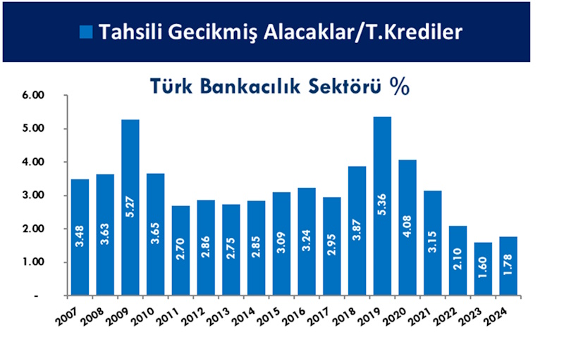 BDDK tarafından yayımlanan tahsili problemli hale gelmiş olan kredilerle ilgili veriler son dönemlerde tam bir şeffaflık içerinde olmadığı sorunu halen devam ediyor. Ancak yayımlanan verilere göre takipteki kredilerin öz kaynaklara oranı, 2019 yılında %30,63 iken 2020 yılında %25.44, 2022 yılında ise %11,62 oranına geriledi. Aynı gerileme 2023 yılında da meydana gelmiş ve %8,91 , 2024 yılında ise %10.13 olarak realize oldu. Bu hızlı düşüşün arka planı bilinmiyor. Yine takibe düşen alacakların oranı 2019 yılında %5,36 olarak gözükürken, 2020 yılında %4,08 seviyesine, 2021 yılında ise %3.15 seviyesine, 2022 yılında da %2.10 seviyesine, 2024 yılında da %1,78 seviyesine gerilemiş olduğu raporlanıyor. Ayrıca, yeniden yapılandırma ve ödeme zorluğu içerisindeki firmalara özgü özel uygulamalara konu olan kredi alacaklarının varlığı bilinmekle birlikte, bu türlü perdeleme işlemlerinin miktarı hakkında sağlıklı bilgileri içeren herhangi bir istatistik bulunmuyor. Her hâlükârda bu türlü perdeleme işlemlerinin bilançolarda yer alan takibe dönüşüm oranlarının daha düşük gözükmesine sebep olduğu gayet açıktır.