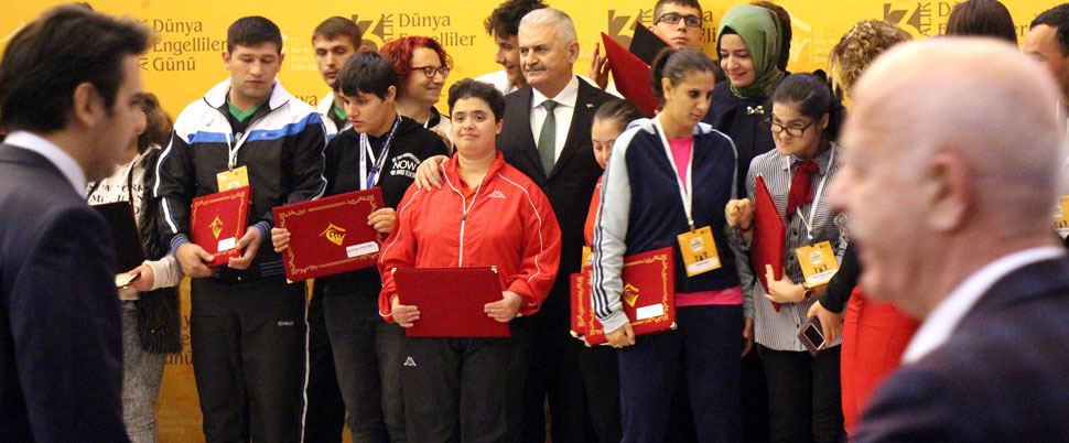 “YARININA ÜMİTLE BAKIYOR” “Unutmayalım inancımız bize bütün insanlara adil ve eşit davranmayı emrediyor. Kültürel kodlarımızda, tarihimizde hiçbir ayrım gözetmeden daima insana hizmet vardır” diyen Başbakan Yıldırım, “Özellikle kadınlarımızın, çocuklarımızın, yaşlılarımızın, engelli kardeşlerimizin hayat kalitesinin iyileştirilmesi konusunda apayrı bir hassasiyetimiz var. 15 yıllık iktidar dönemimizde engelli kardeşlerimiz adeta kabuğunu kırdı ve her biri birer başarı hikayesi yazdı; yazmaya devam ediyor. Dört duvar arasından çıkarak engelli kardeşlerimiz toplumun içine girdi ve toplumla kaynaştı. Artık ülkemizde hiçbir engelli kardeşimizin hayal kurmasının önüne kimse engel koyamıyor. Hayalime nasıl ulaşırım korkusu yaşamıyor. Yarınına ümitle bakıyor” ifadesini kullandı.