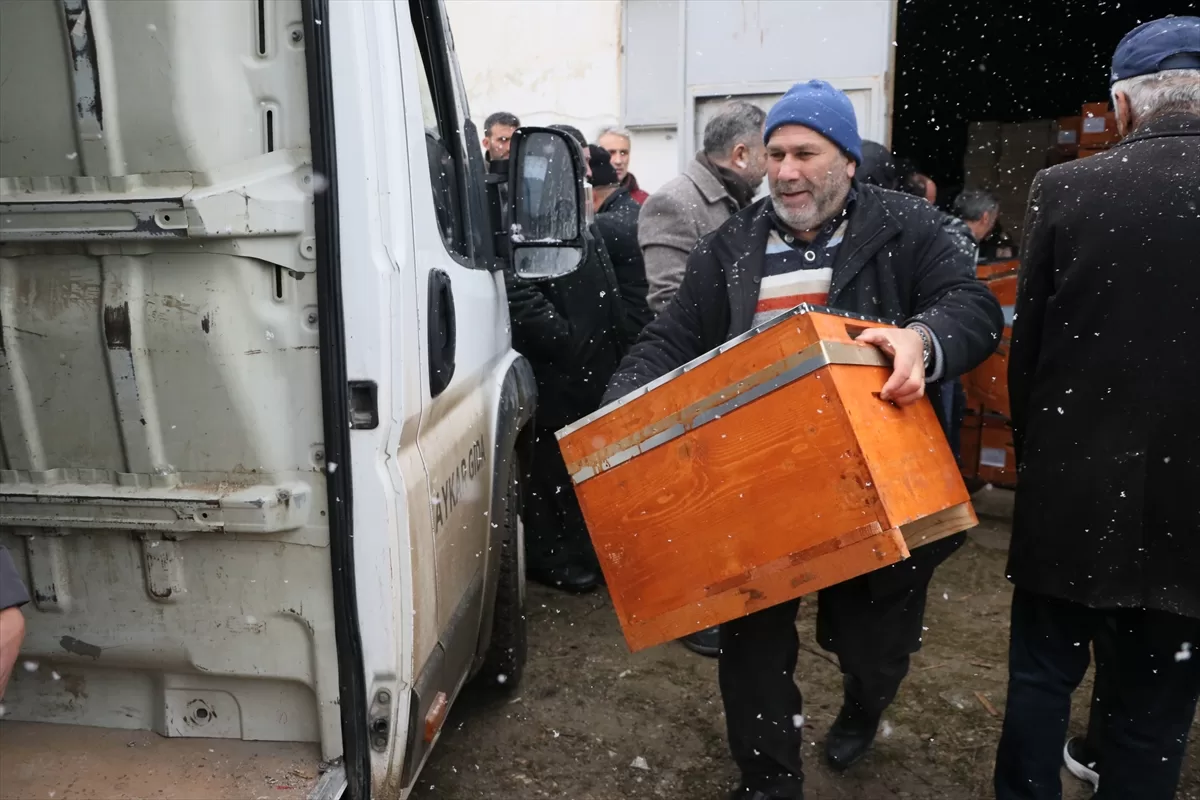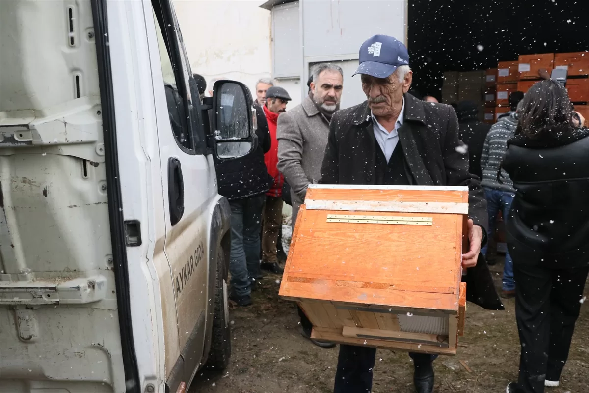 Konuşmaların ardından Gümrükçü, Gültekin ve Ersen, arıcılara kovan ve ekipmanları teslim etti.