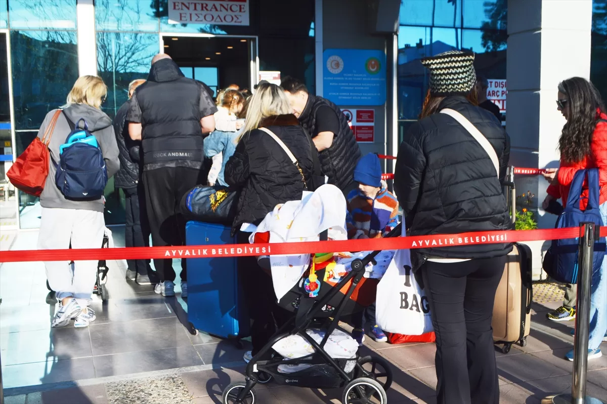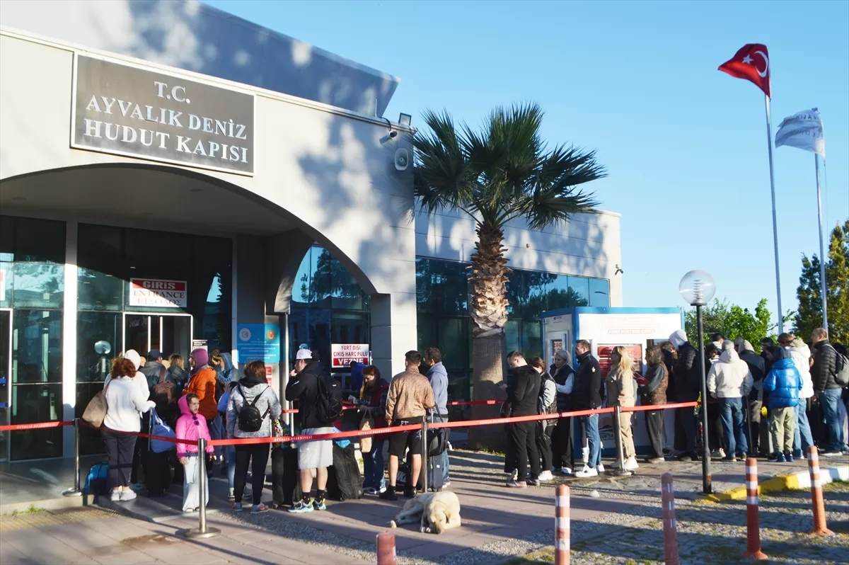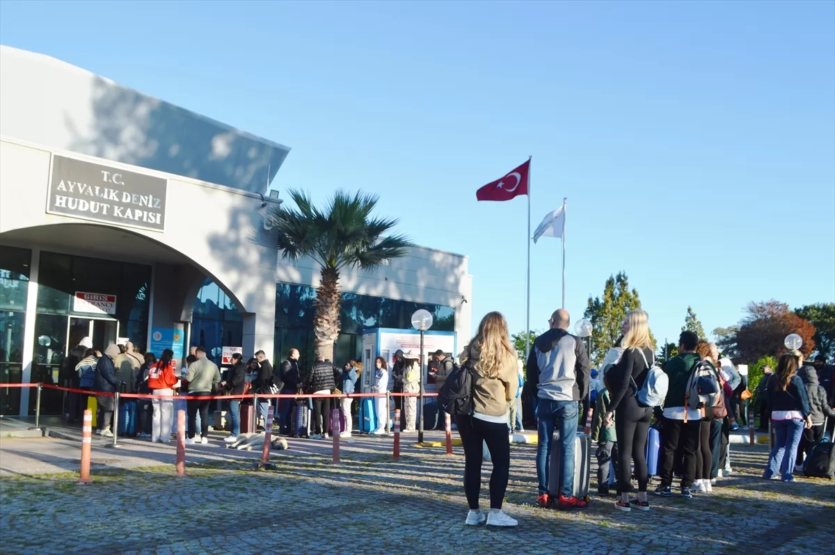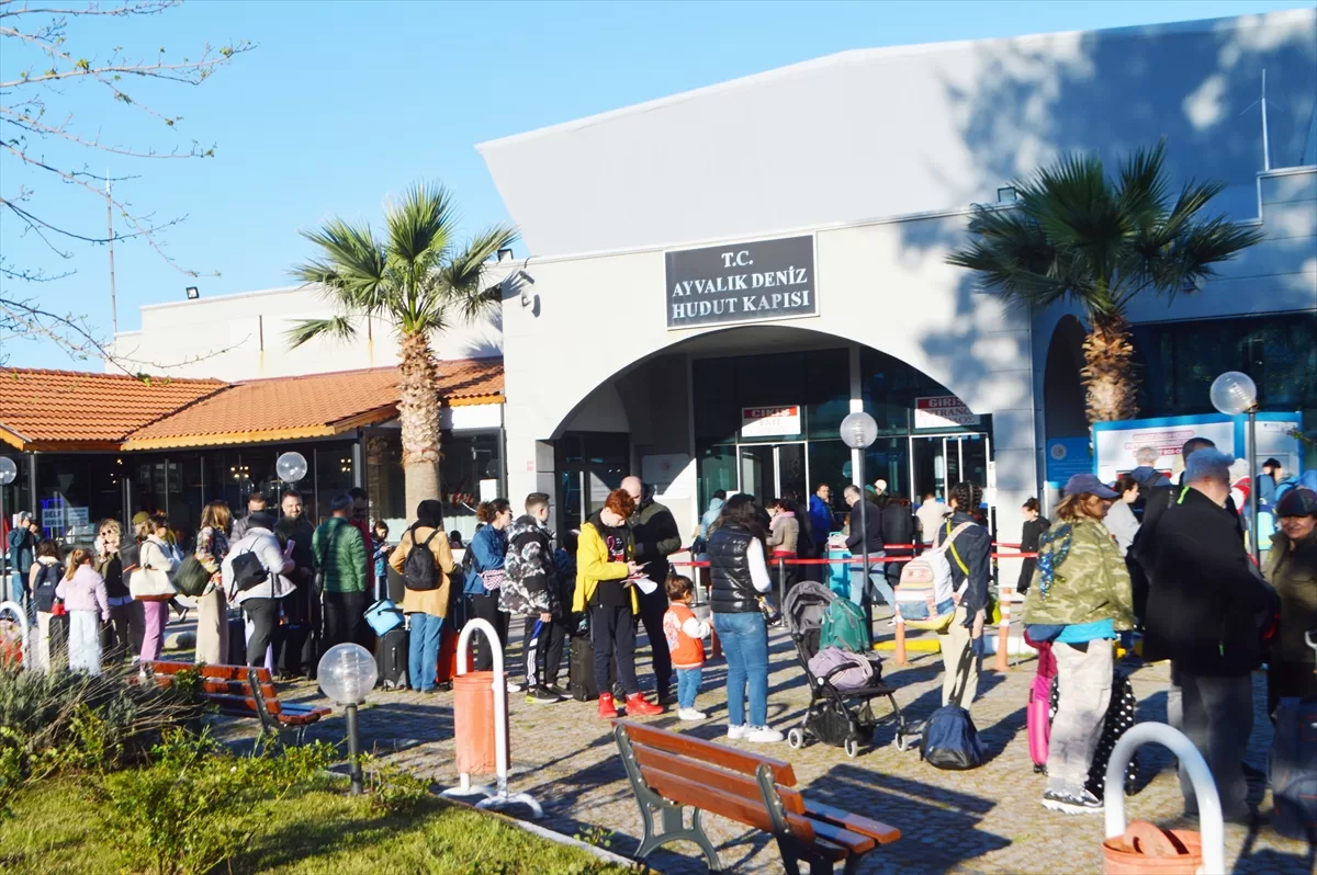 Tatillerini Midilli'de geçirmek isteyen ziyaretçiler, Ayvalık Deniz Hudut Kapısı'nda sıralarının gelmesini bekleyip, işlemlerini yaptırdıktan sonra feribotla Ada'ya hareket ediyor. Yoğunluk nedeniyle hudut kapısı önünde zaman zaman kuyruklar oluşuyor.