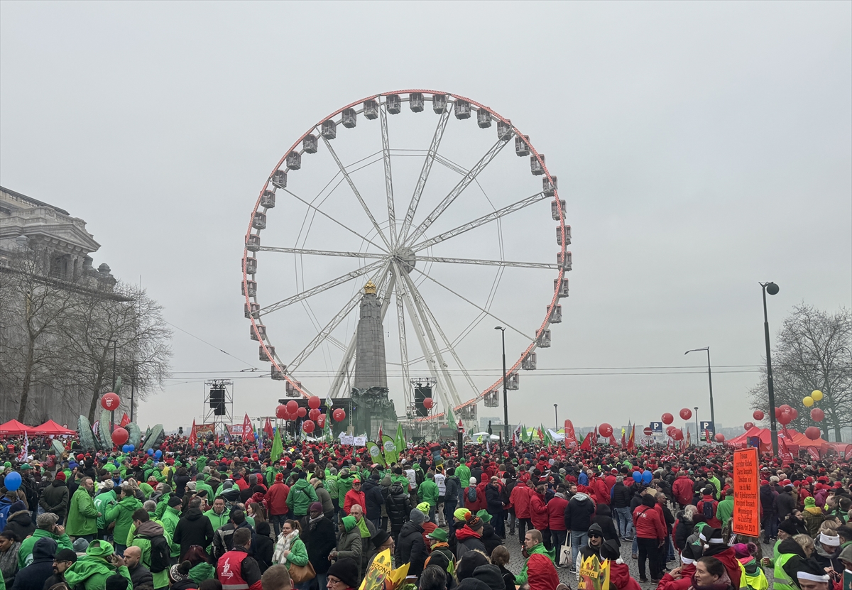 Belçika'daki bütün işçi sendikalarının çağrısı üzerine binlerce kişi, Brüksel Adalet Sarayı önünde bir araya geldi.