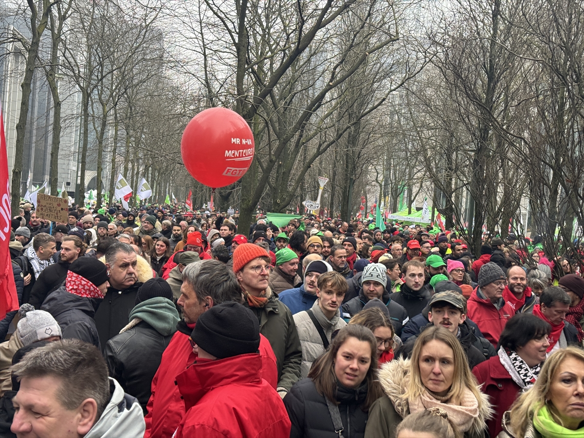 Belçika'daki bütün işçi sendikalarının çağrısı üzerine yaklaşık 60 bin kişi, Brüksel'in merkezindeki Kuzey Tren İstasyonu önünde bir araya geldi.