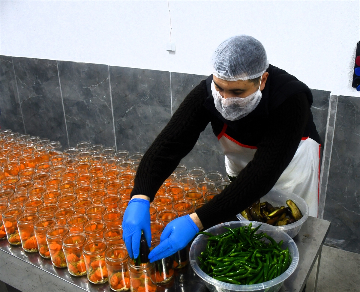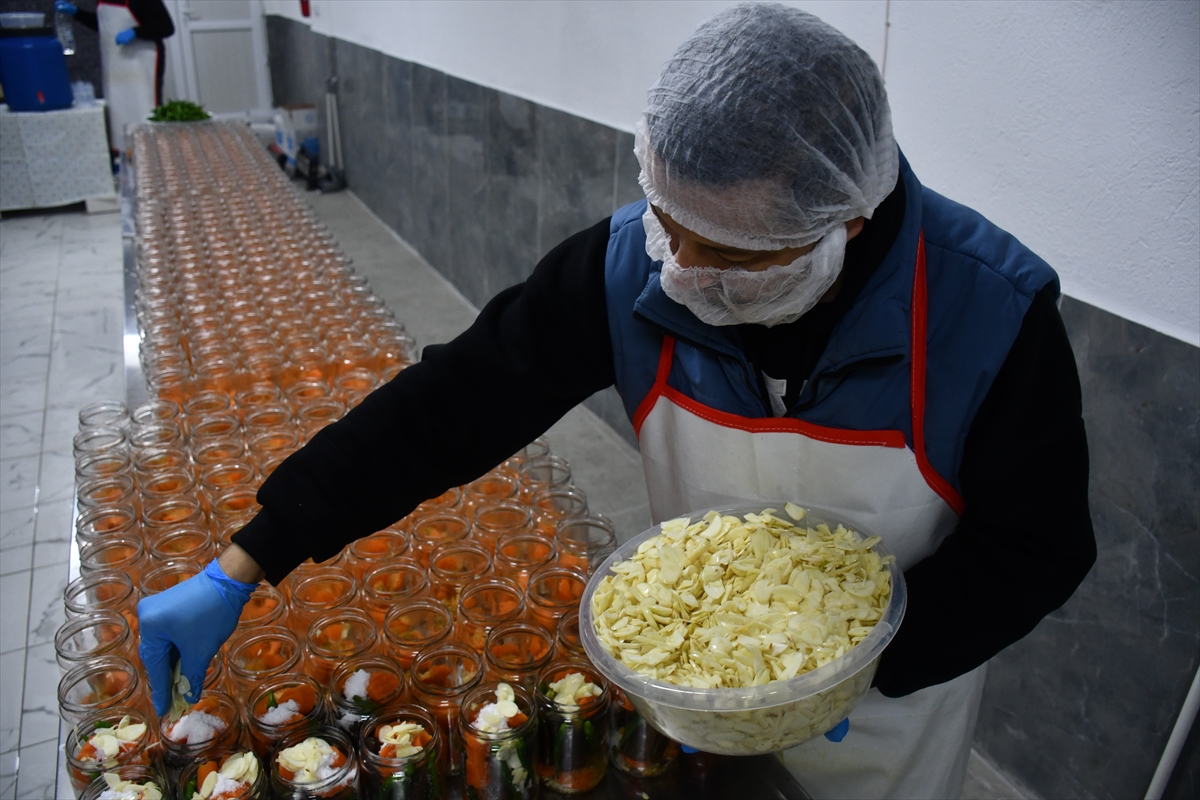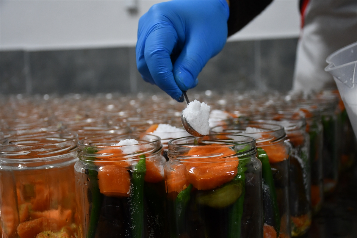 Bu kapsamda 447 nüfuslu Küplü köyündeki 2 katlı bir binanın bodrum katındaki depoyu kiralayan, 3 aylık çalışma sonucu 60 metrekarelik tesislerini faaliyete geçiren ikili, Antalya'daki üreticilerden temin edilen havuç, patlıcan, biber ve sarımsak gibi sebzeleri, sterilizasyon, yıkama ve doğrama aşamalarından geçirdikten sonra hardal tohumu ekleyip turşuya dönüştürüyor.