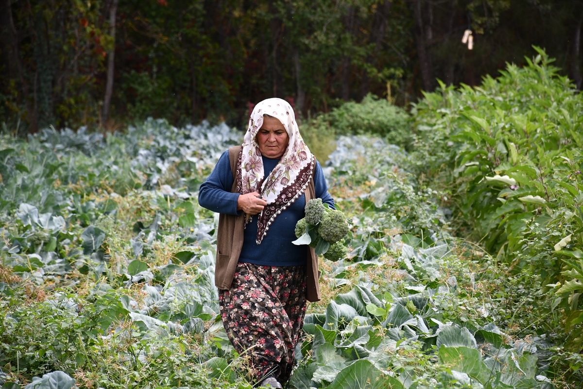 Yaklaşık 25 sene boyunca eşi Nazmi İkiz ile yetiştirdiği ürünleri İnhisar'daki halk pazarında satan, kocasının 2016'da vefatından sonra işleri devralan 2 çocuk annesi 60 yaşındaki Hanımşah İkiz, 10 dönümlük arazilerinde üretim yapmaya devam ediyor.