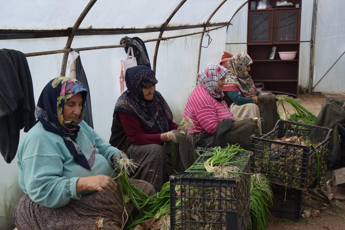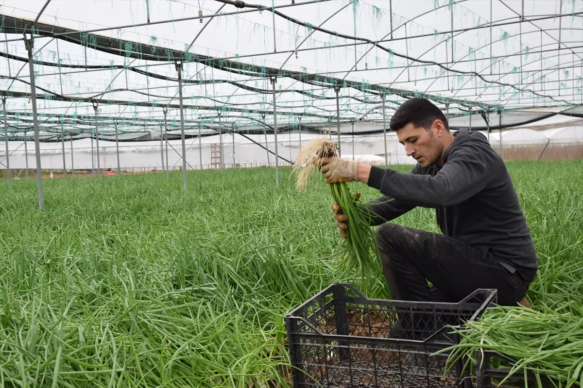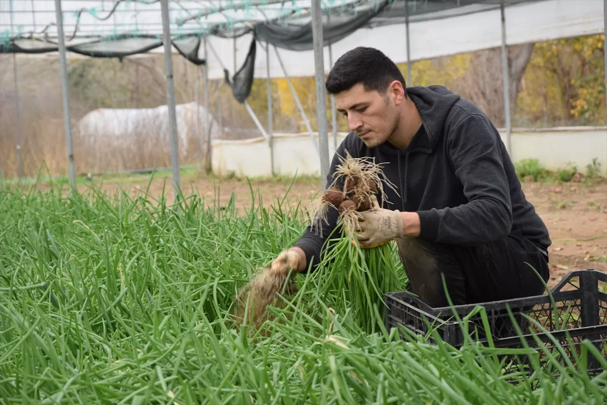 Üretici Mithat Güçlüdağ, AA muhabirine, kış aylarında yetiştirdikleri yeşil soğanları temizleyip, yenilecek şekle getirdiklerini aktararak, hasadını yaptıkları yeşil soğan fiyatının hava şartlarına bağlı olduğunu söyledi.