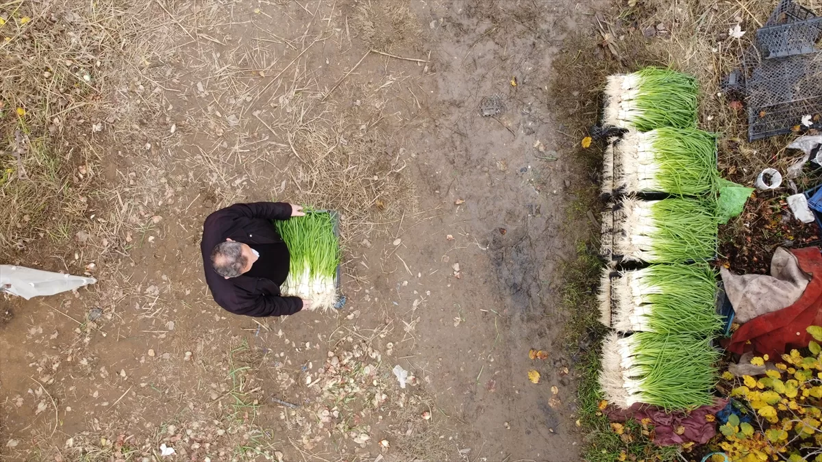 BİLECİK (AA) – Marmara Bölgesi'nin sebze üretim merkezlerinden Bilecik'in İnhisar ilçesinde hasadına başlanan yeşil soğan, temizlenip satış noktalarına gönderiliyor.
