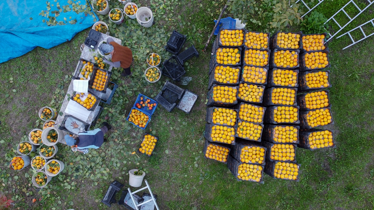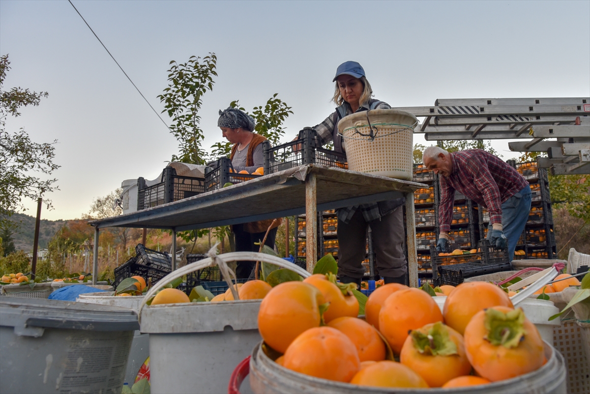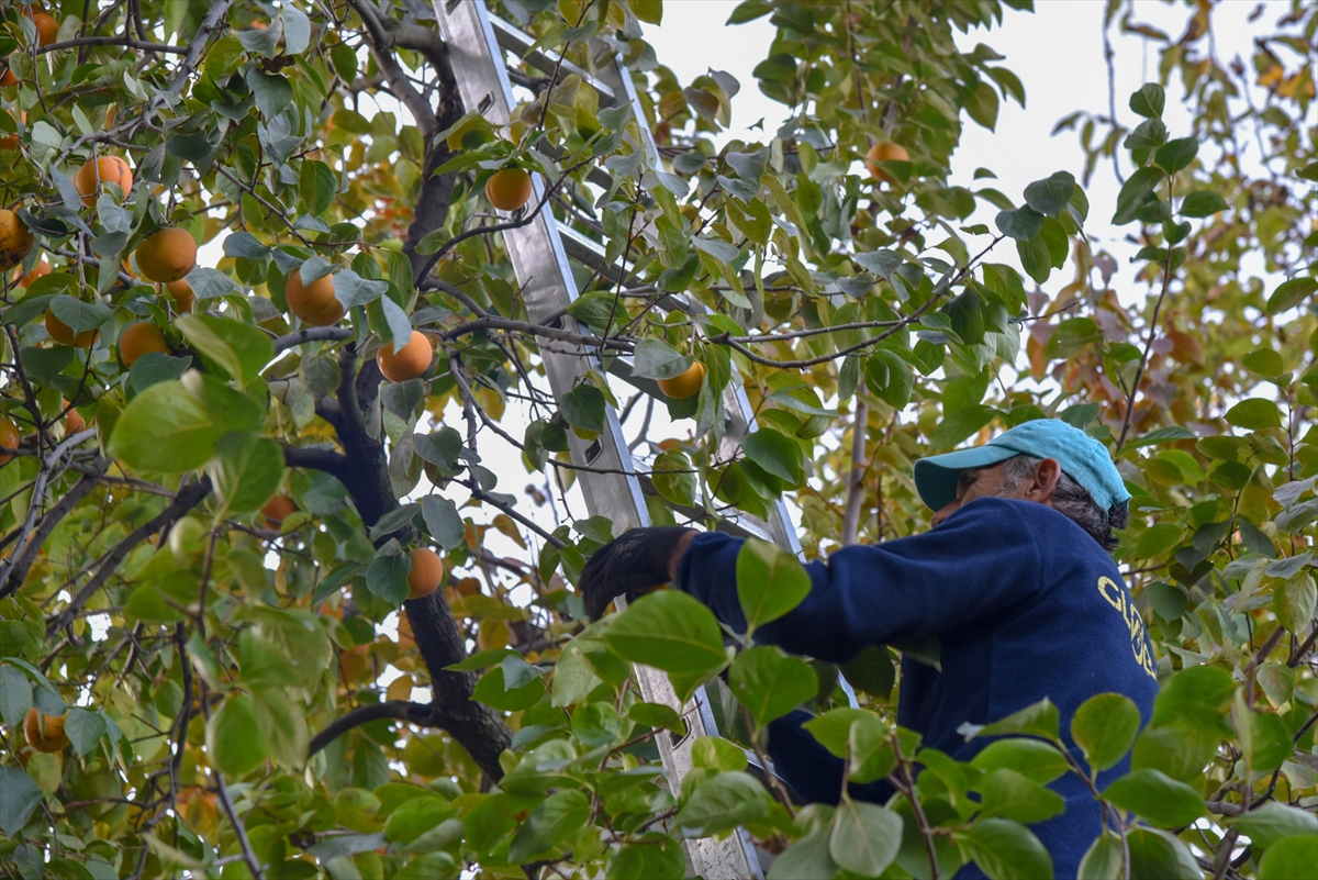 Bölgede ekim ayının son haftasında başlayan ve kasım ortalarına kadar devam cennet hurması hasadı, bahçelerde yüksekliği 8-10 metreyi bulan ağaçlara merdivenle çıkan işçiler tarafından yapılıyor.