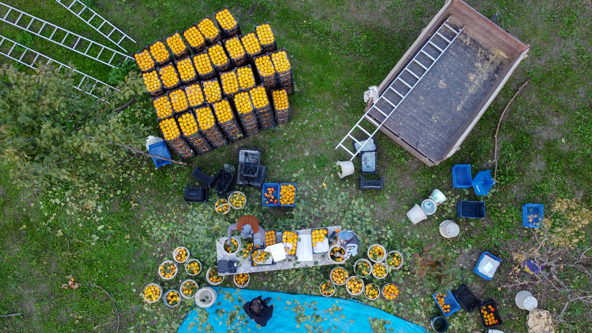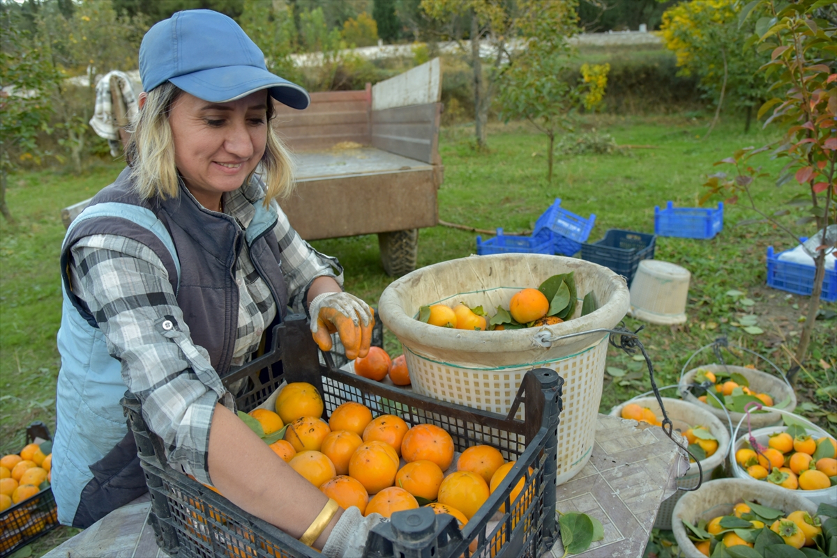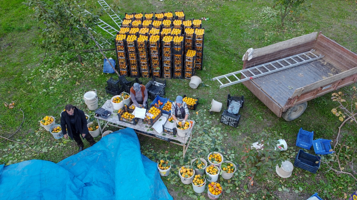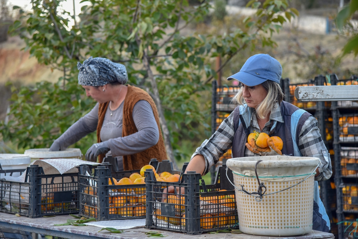 Bölgede ekim ayının son haftasında başlayan ve kasım ortalarına kadar devam cennet hurması hasadı, bahçelerde yüksekliği 8-10 metreyi bulan ağaçlara merdivenle çıkan işçiler tarafından yapılıyor.