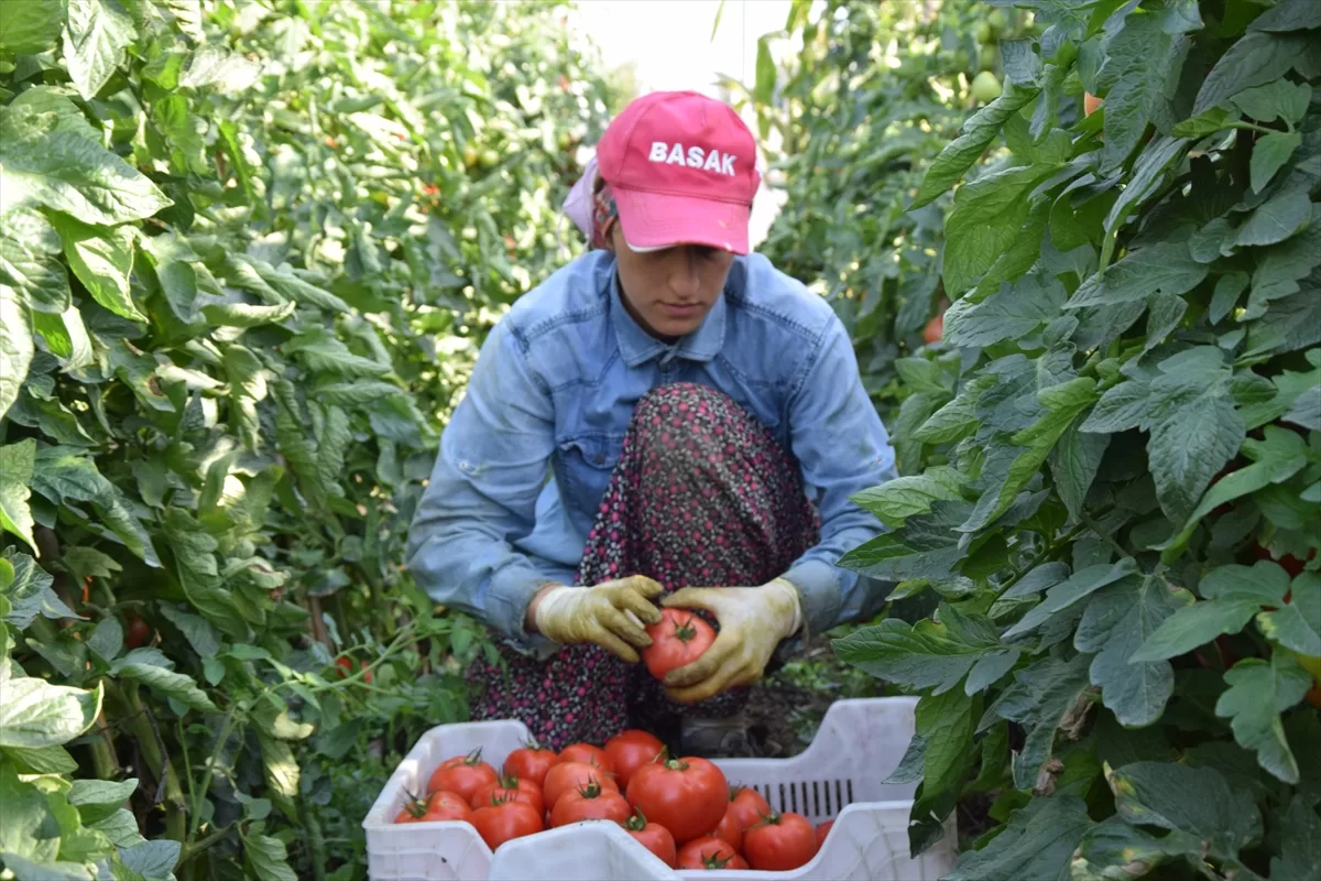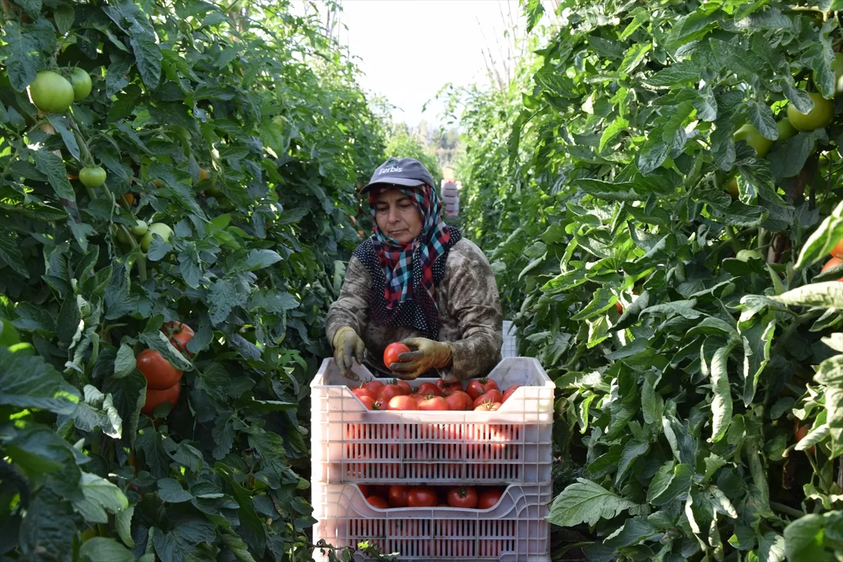 Sabahın ilk ışıklarıyla tarlaya gelen işçiler, titizlikle topladıkları domatesleri ebatlarına göre sınıflandırıyor.