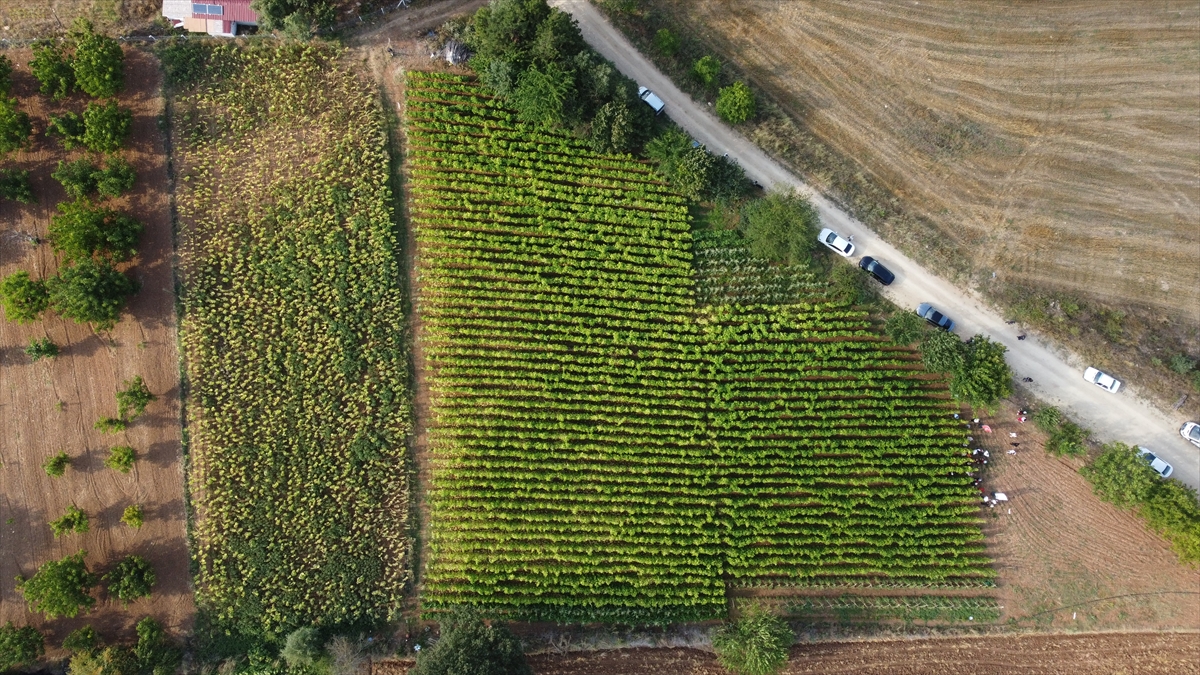 BİLECİK (AA) – Bilecik merkeze bağlı Kınık köyünde barbunya cinsi fasulyenin hasadı sürüyor.