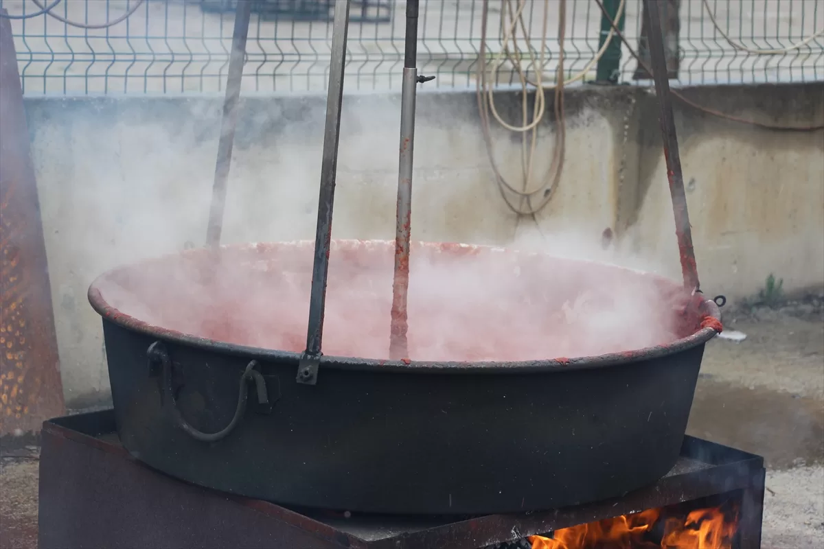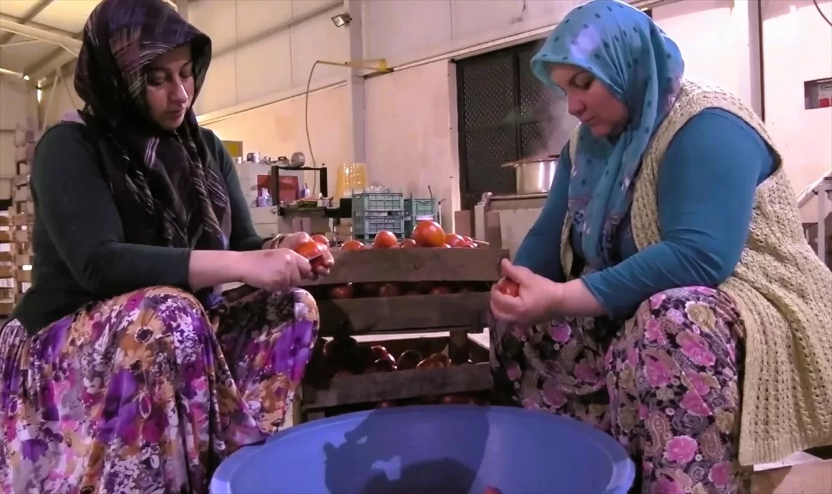 Tetik, tesiste atadan kalma usullerle kadınlar tarafından kazanlarda haşlanan domateslerin püre haline getirildiğini, tekrar odun ateşinde kaynatılarak kavanozlara doldurulduğunu anlattı.