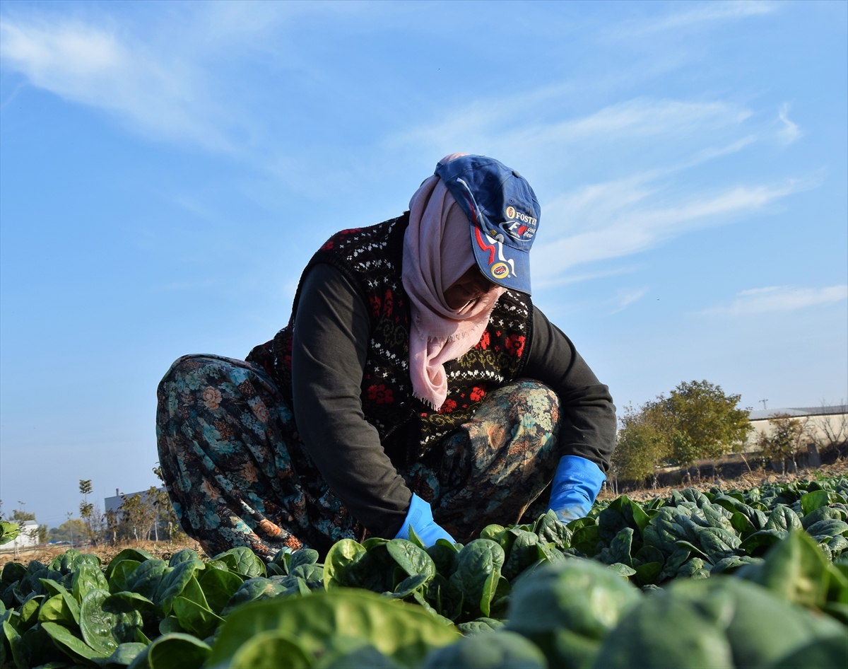 Tarım işçisi Hatice Güneş ise aile bütçesine katkı sağlamak için sabahın ilk ışıklarında tarlaya geldiklerini kaydederek, "10 yıldır ıspanak tarlasında işçi olarak çalışıyorum. Burada çalışarak hem evin ekonomisine katkı sağlıyorum hem de çocuklarımın geleceği için çalışıyorum." dedi.