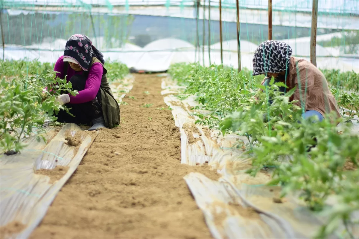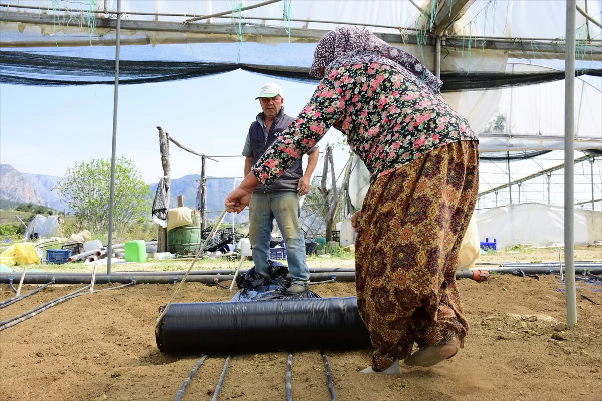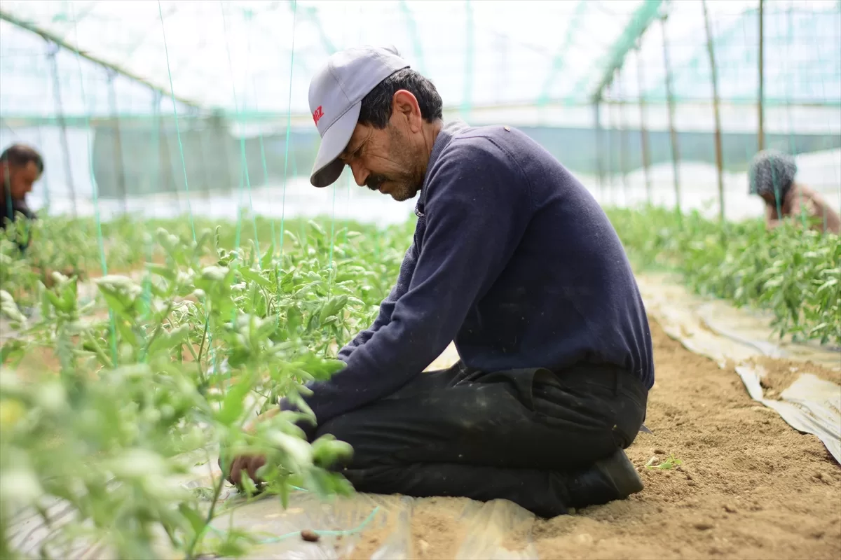 Sabah erken saatlerde seralara gelip fideleri toprakla buluşturan işçiler, hava kararıncaya kadar mesaiye devam ediyor.