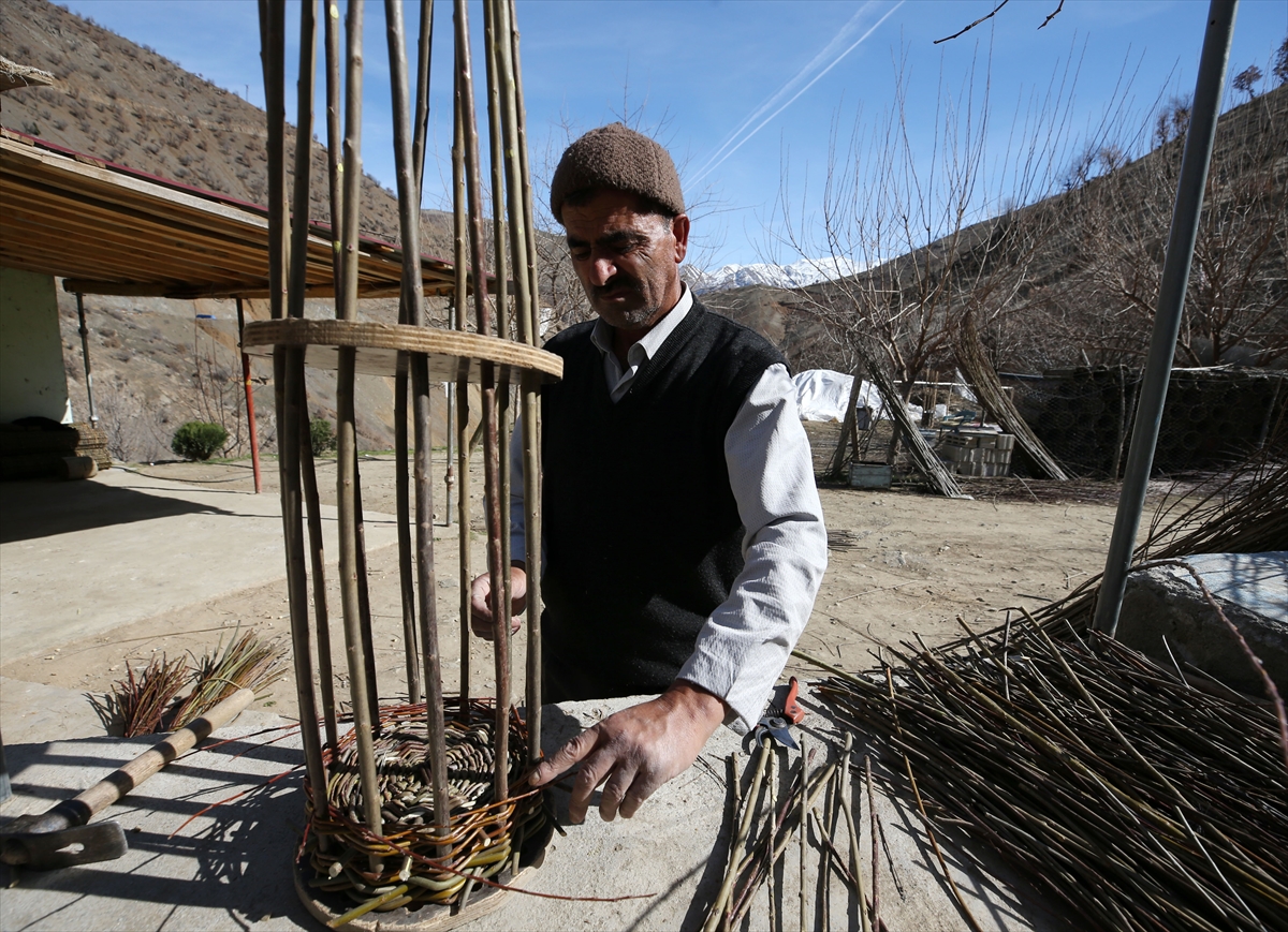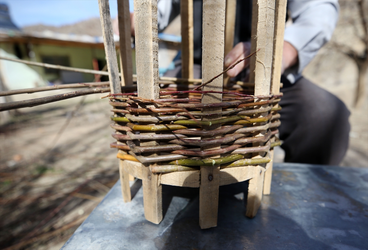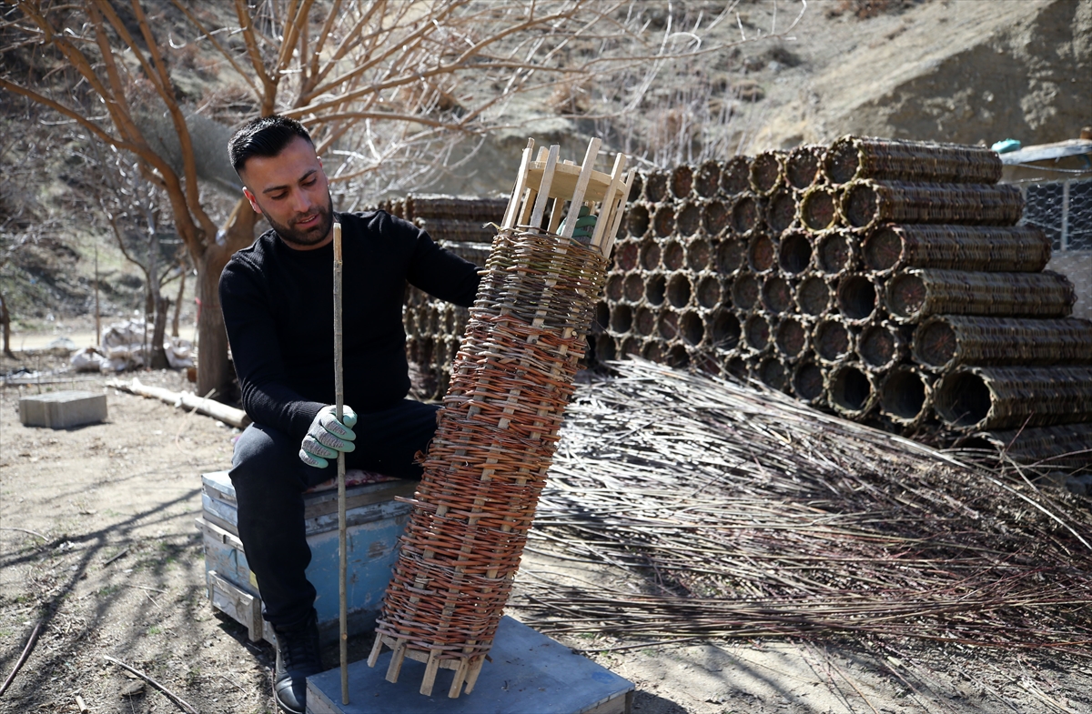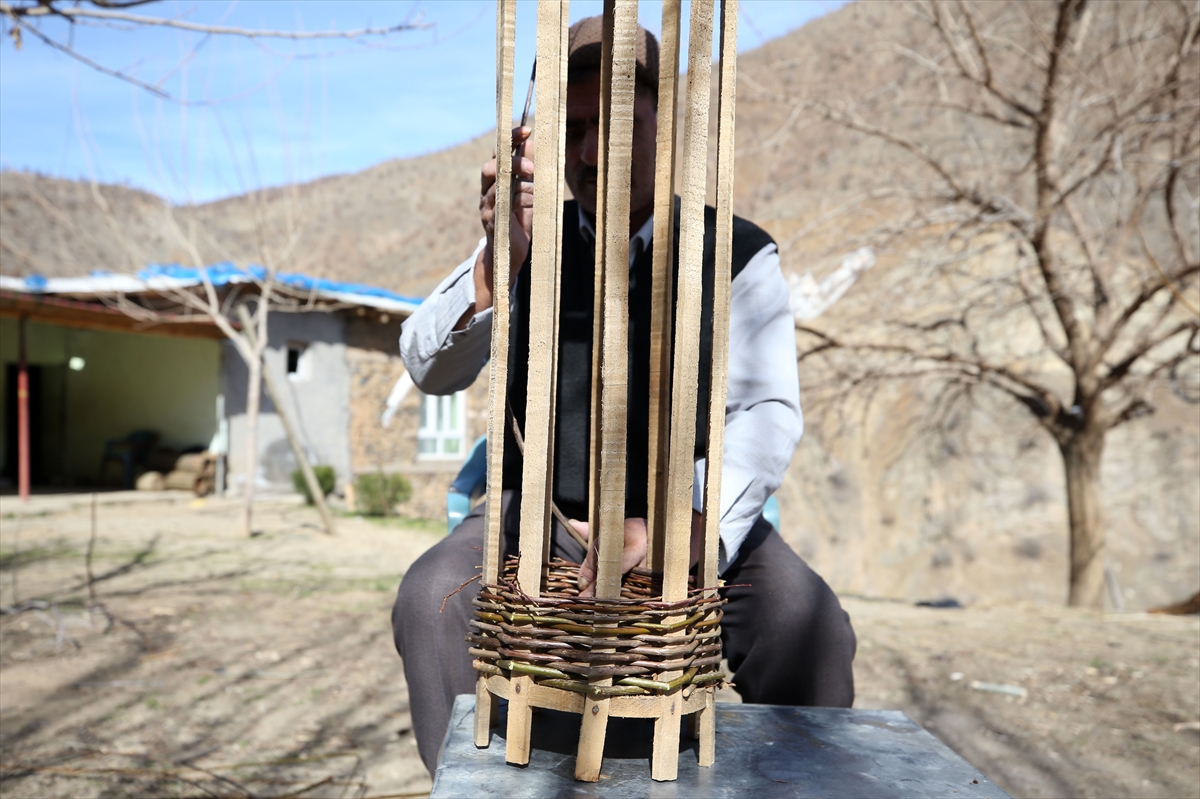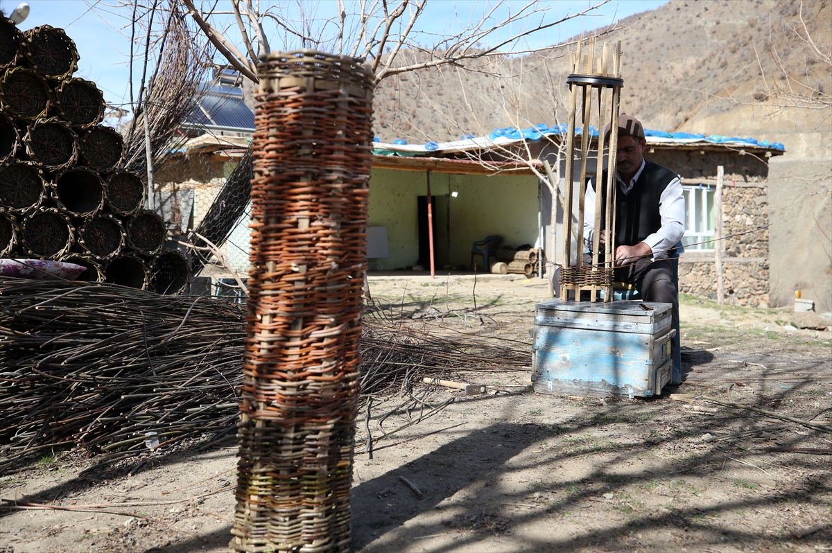BİTLİS (AA) – ŞENER TOKTAŞ – Bitlis'in Hizan ilçesinde, söğüt dallarından kara kovan balının üretildiği sepetleri yapan arıcı Kerem Yalçın, ihtiyaç fazlası olanları da diğer arıcılara satıyor.