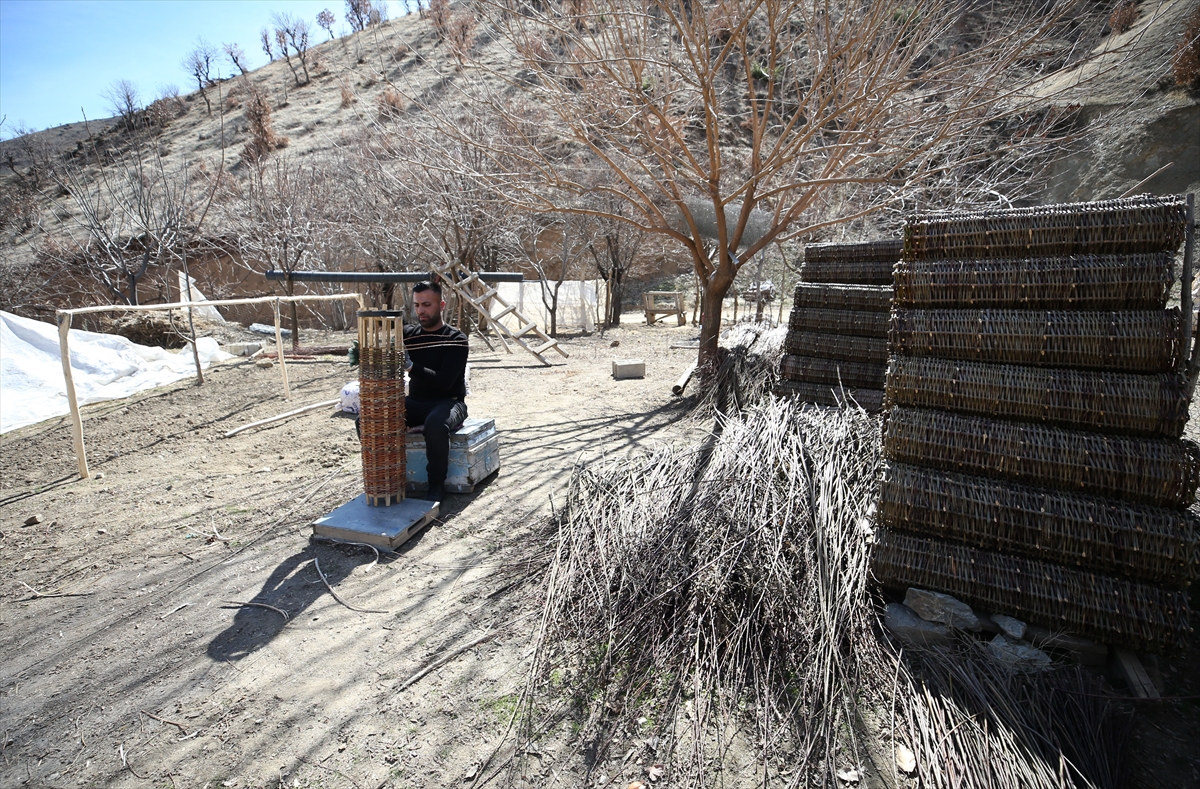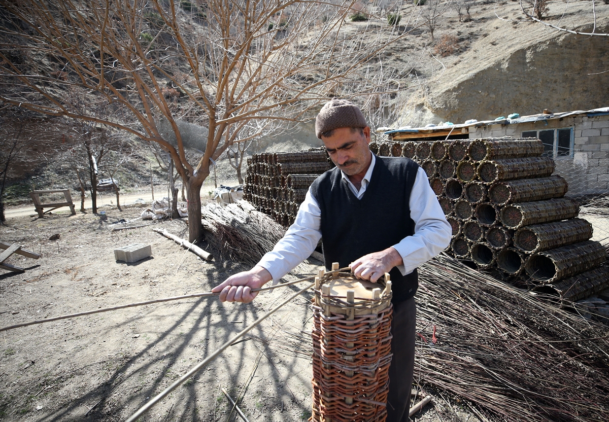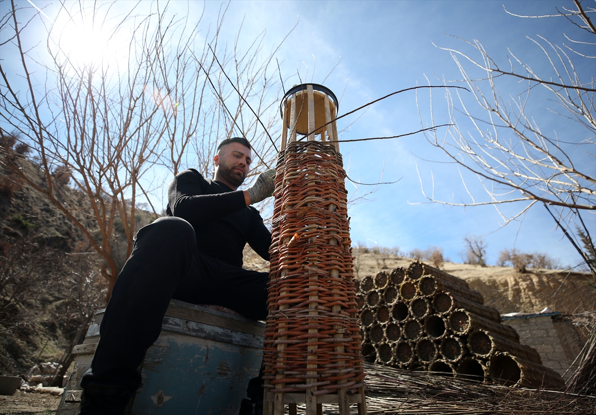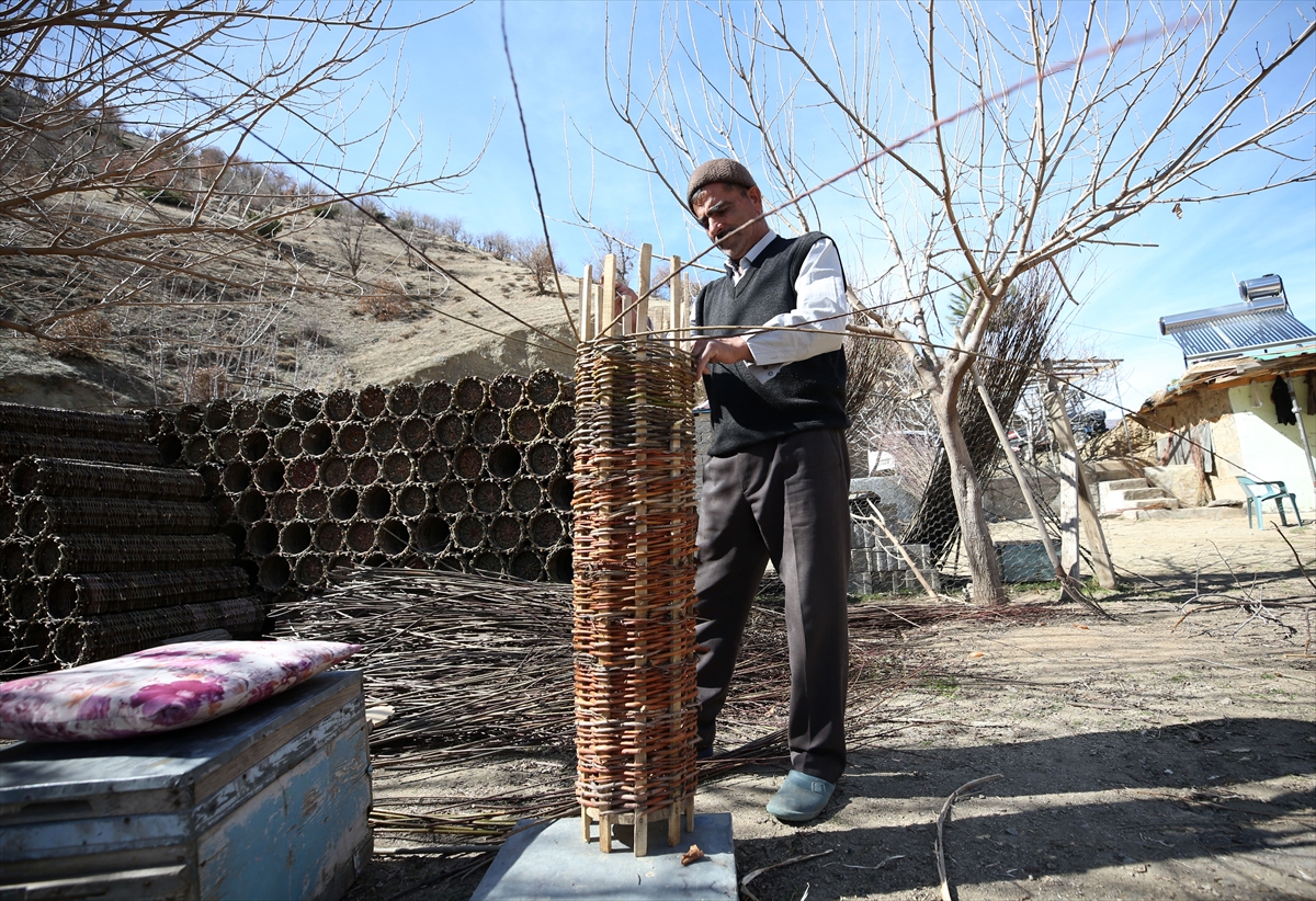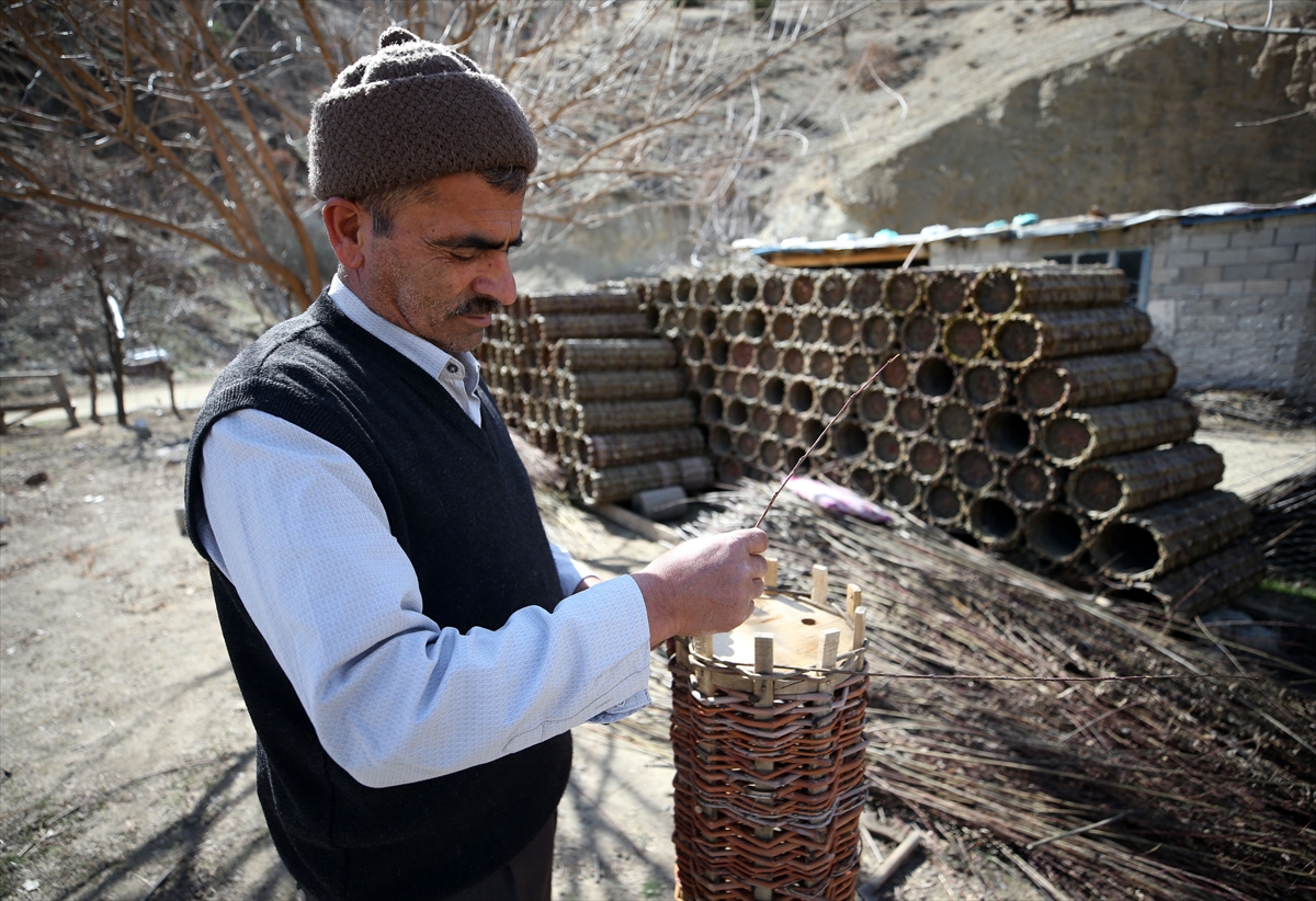 BİTLİS (AA) – ŞENER TOKTAŞ – Bitlis'in Hizan ilçesinde, söğüt dallarından kara kovan balının üretildiği sepetleri yapan arıcı Kerem Yalçın, ihtiyaç fazlası olanları da diğer arıcılara satıyor.