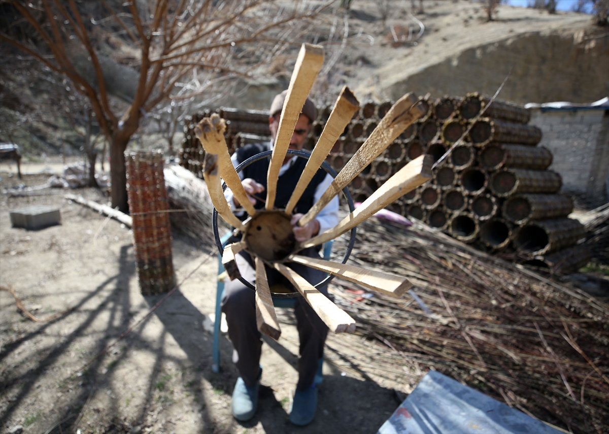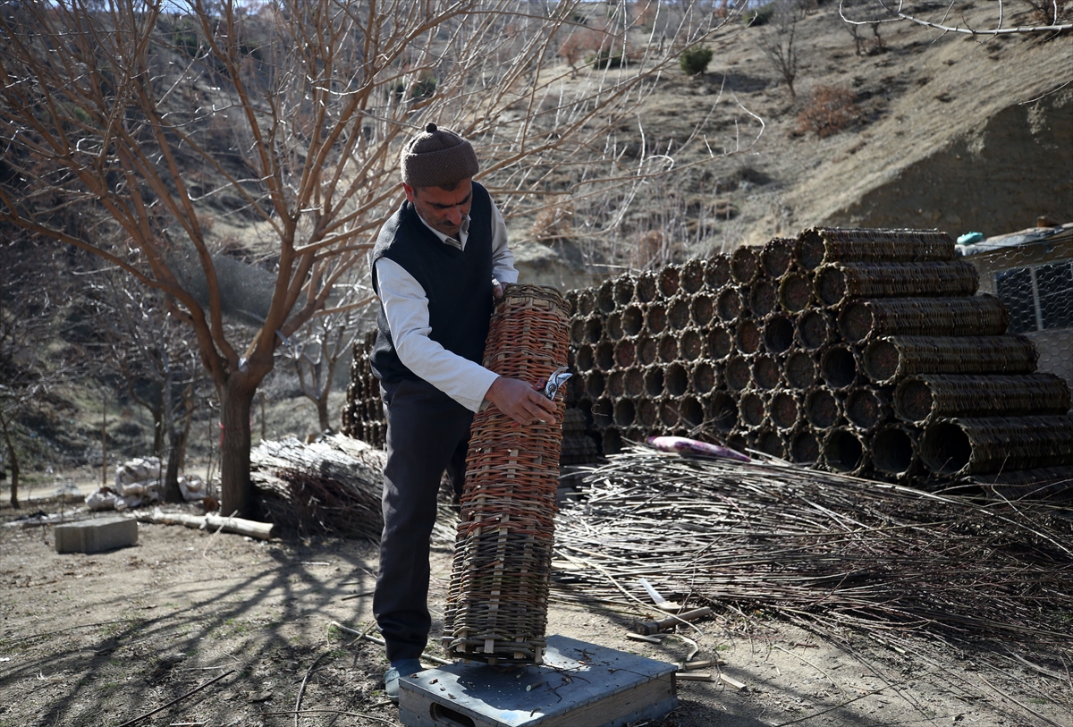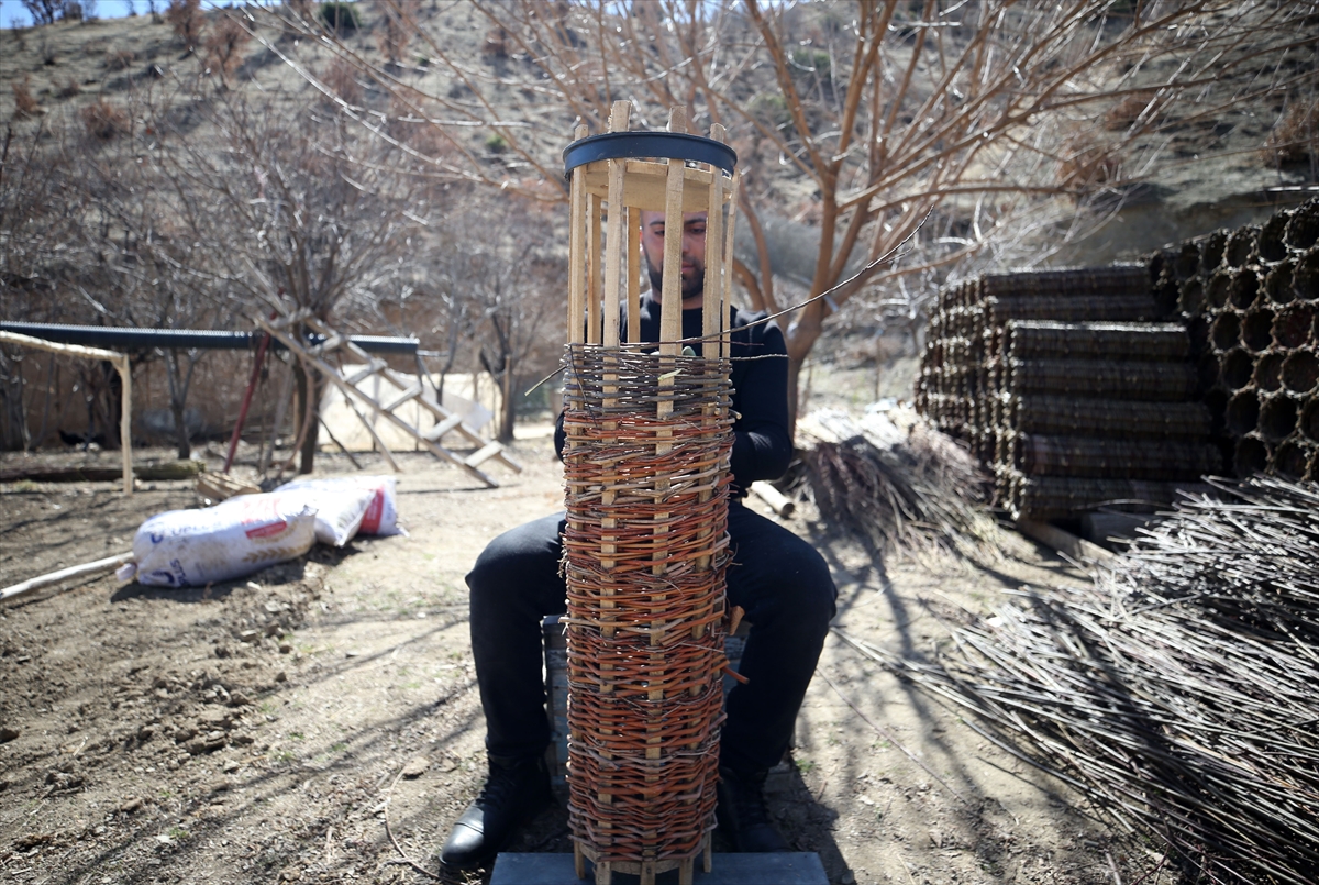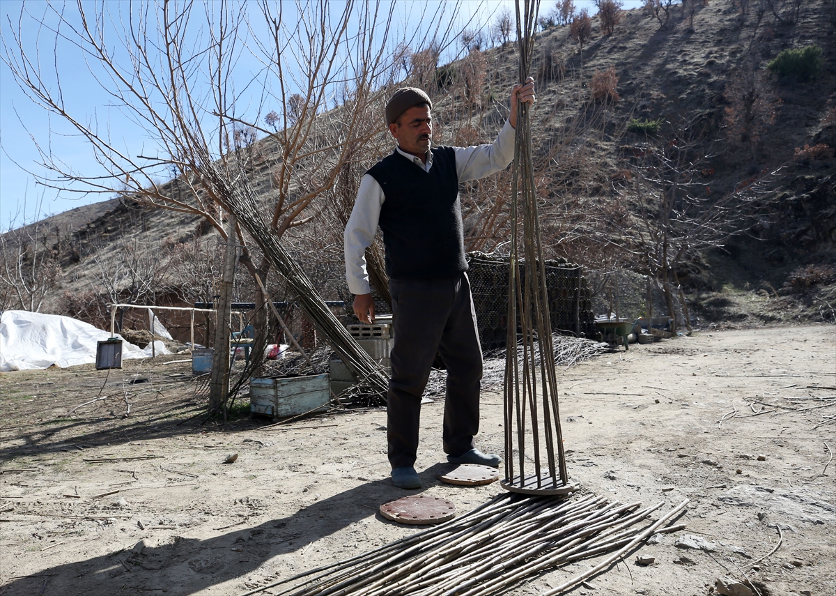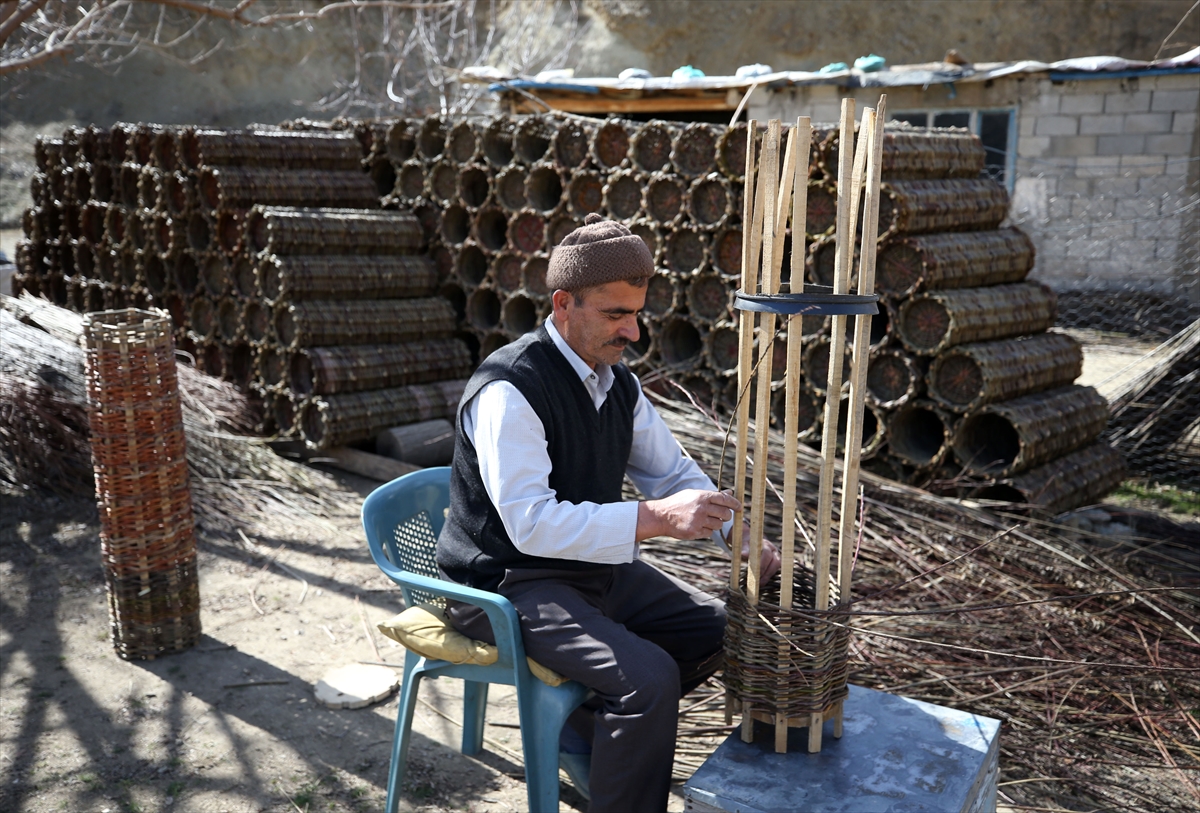 BİTLİS (AA) – ŞENER TOKTAŞ – Bitlis'in Hizan ilçesinde, söğüt dallarından kara kovan balının üretildiği sepetleri yapan arıcı Kerem Yalçın, ihtiyaç fazlası olanları da diğer arıcılara satıyor.