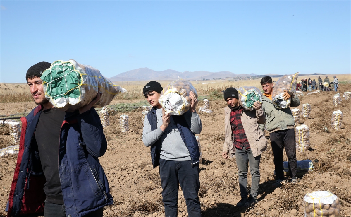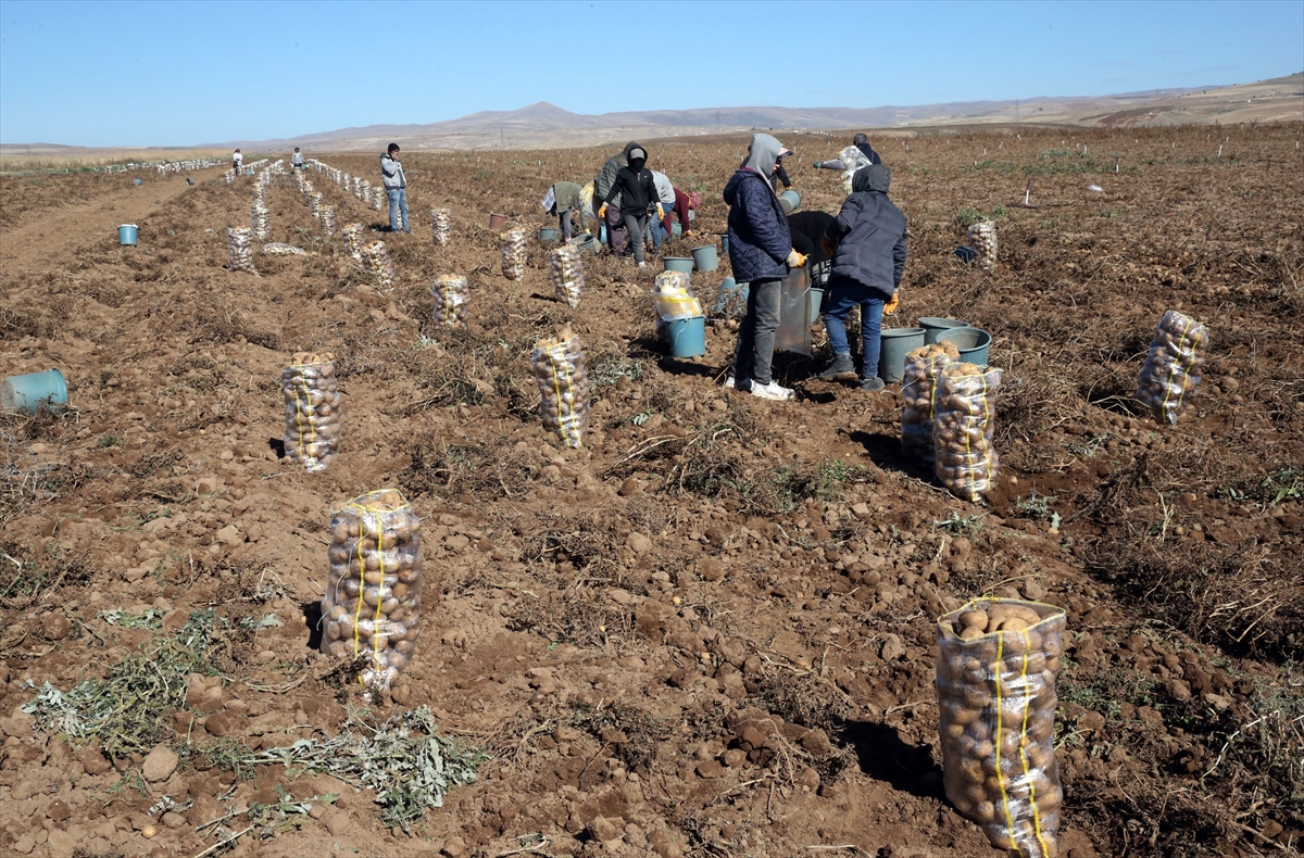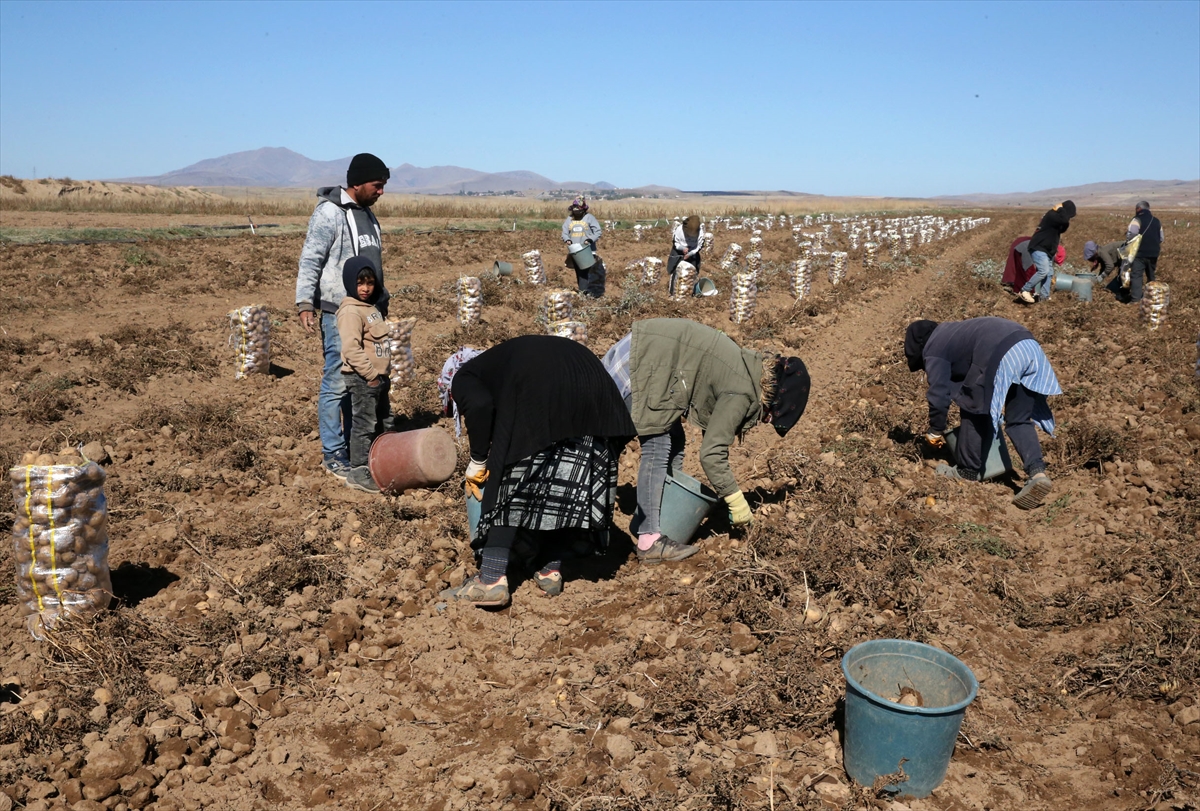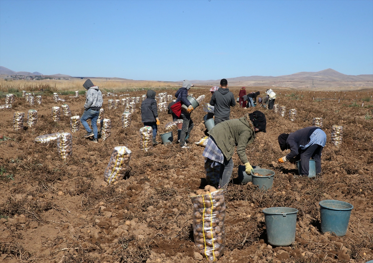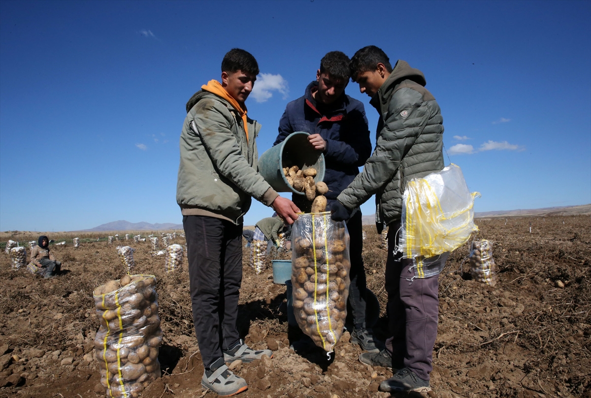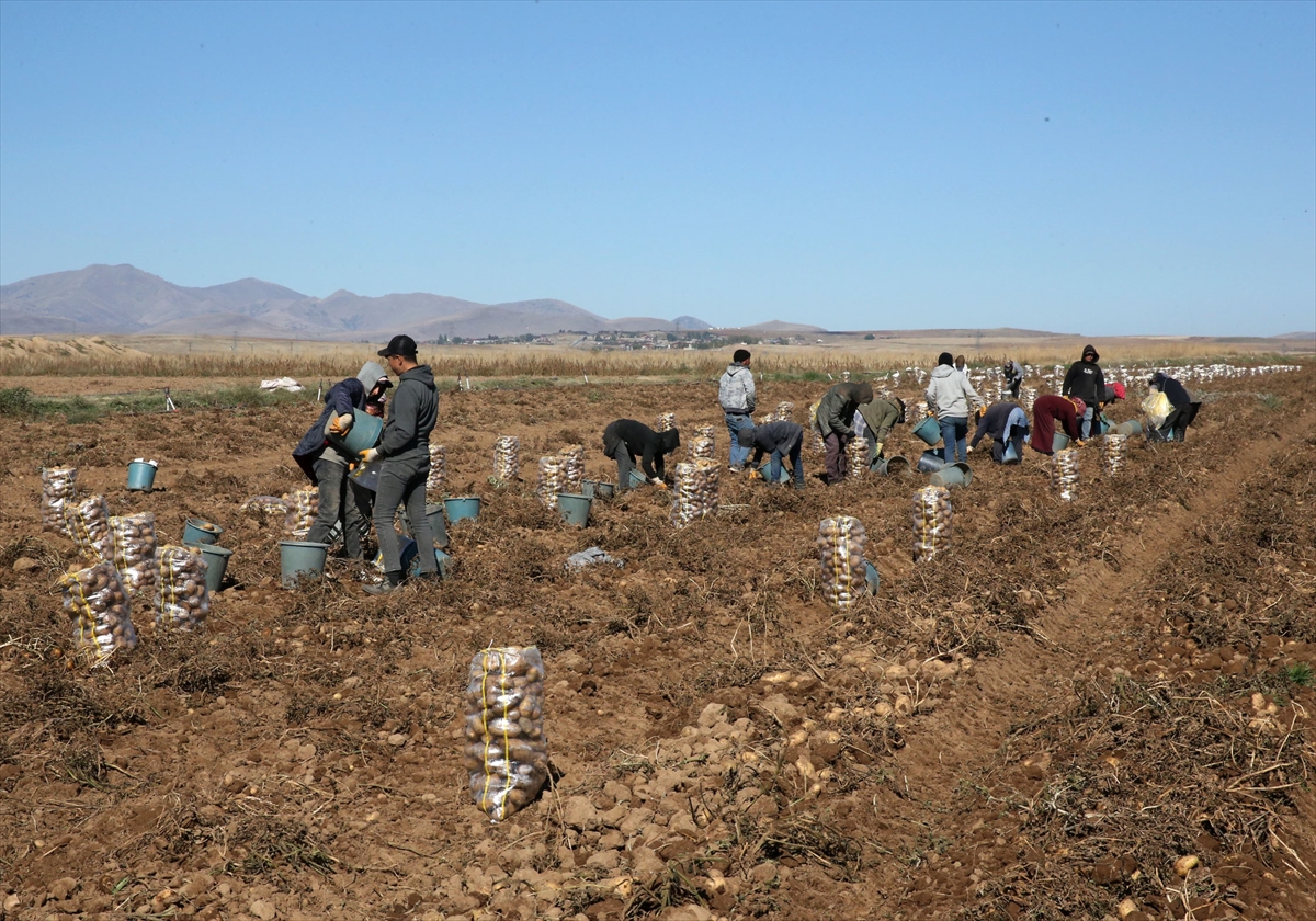 Birçok ilden kente gelen tarım işçileri, sabah erken saatlerde tarlalara giderek mesaiye başlıyor. Büyük emeklerle topraktan çıkarılarak torbalara doldurulan patatesler, araçlarla depolara taşınıyor.